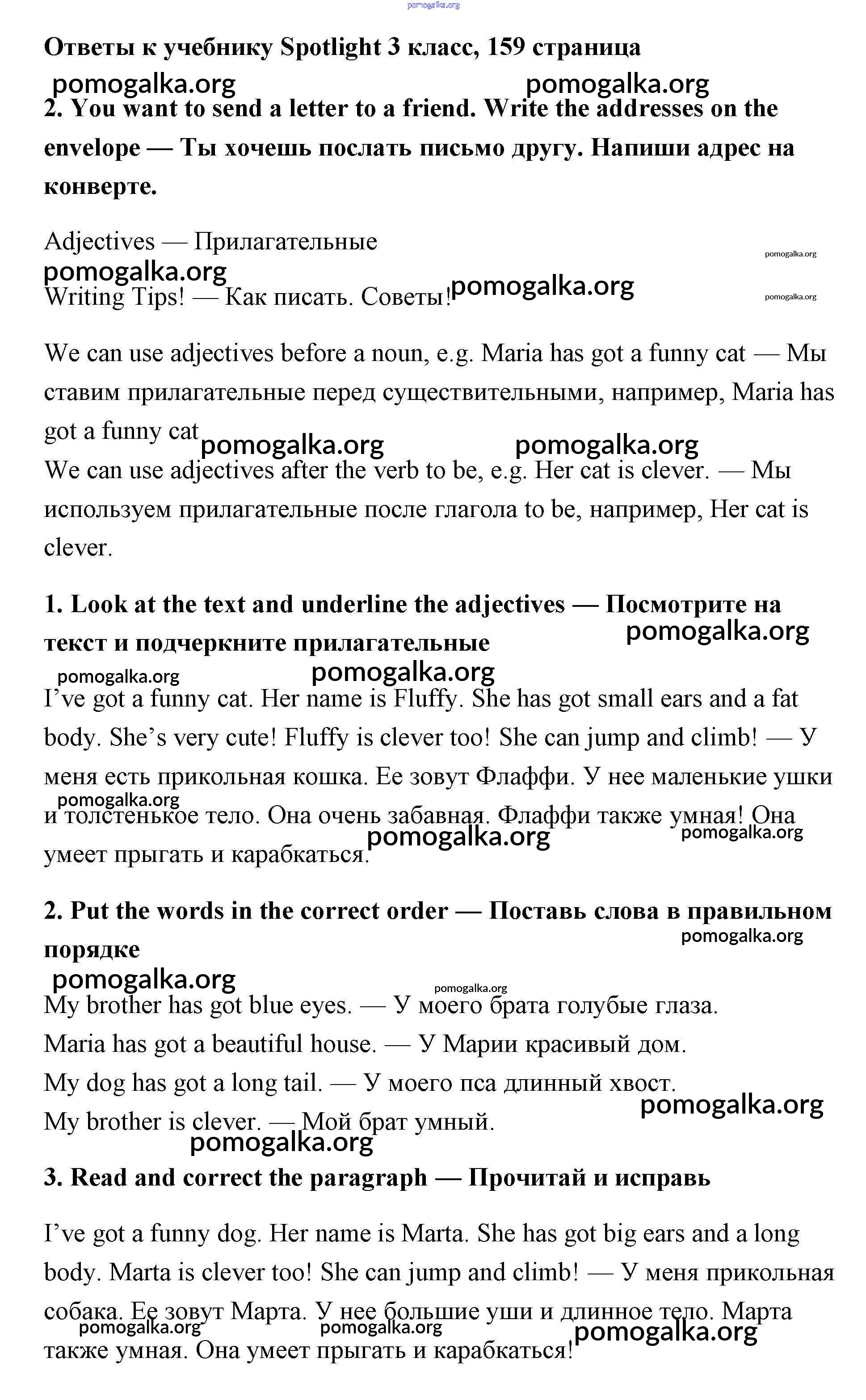 Готовые ответы - Английский язык 3 класс Быкова - страница 159