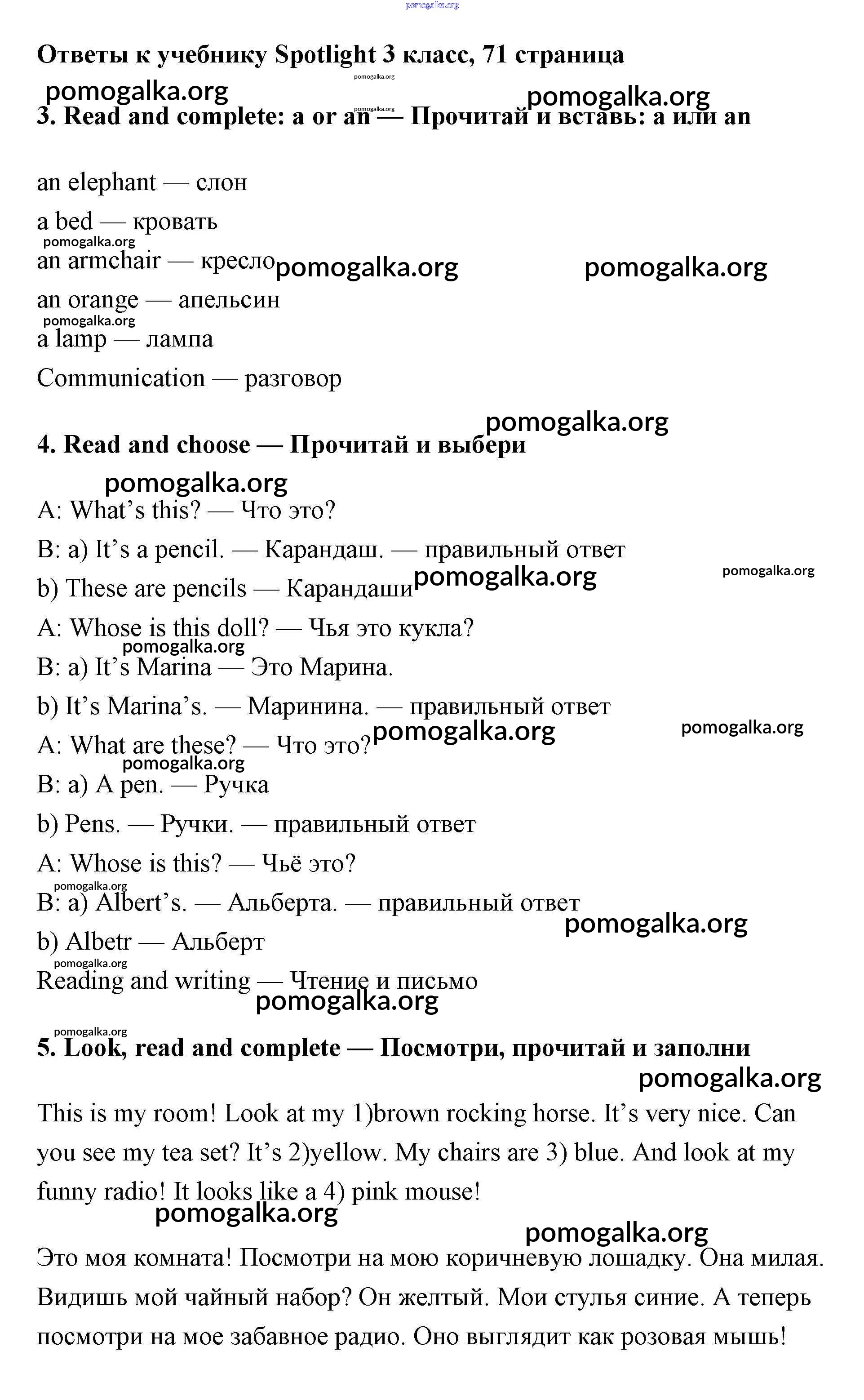 Готовые ответы - Английский язык 3 класс Быкова - страница 71