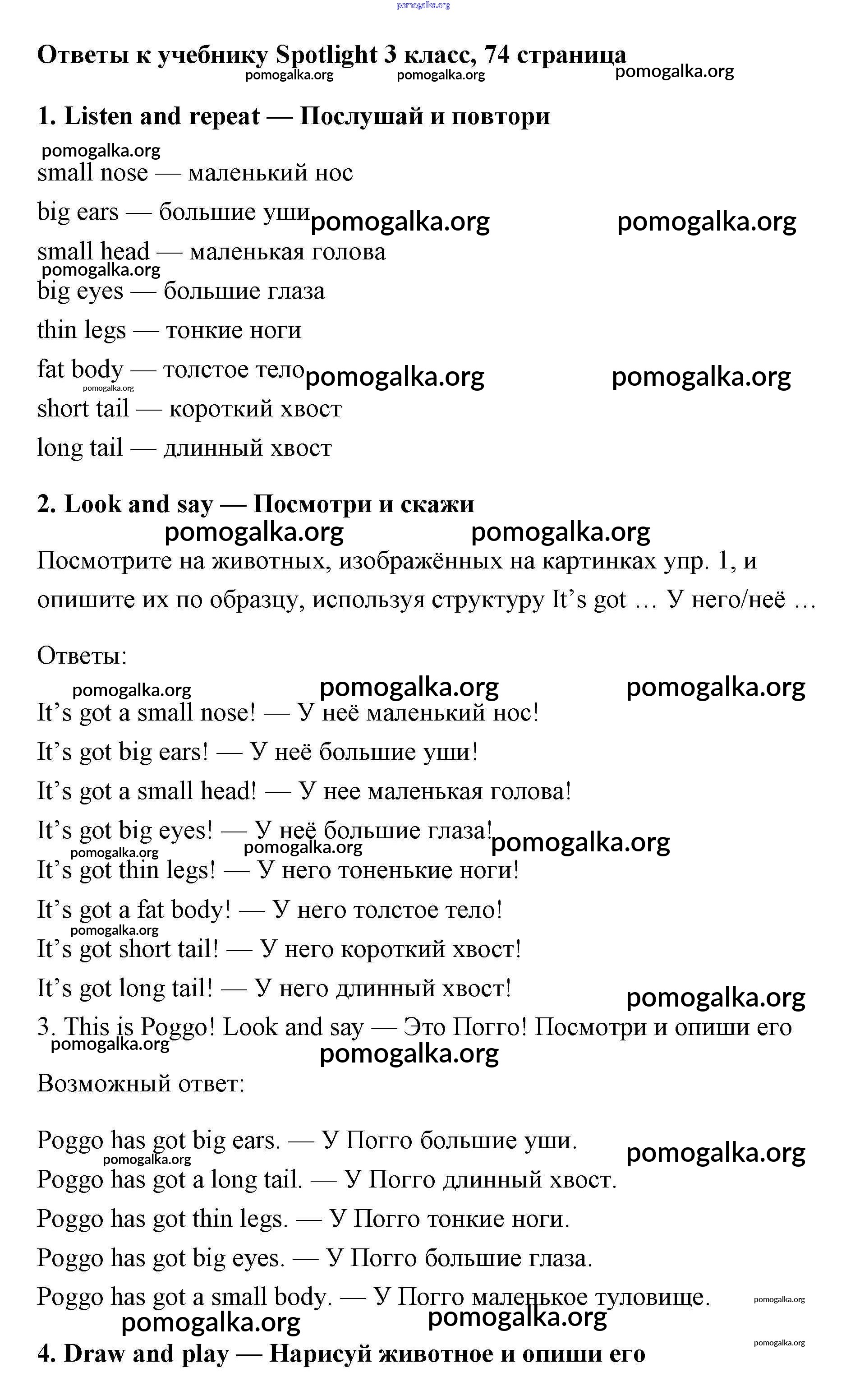 Готовые ответы - Английский язык 3 класс Быкова - страница 74