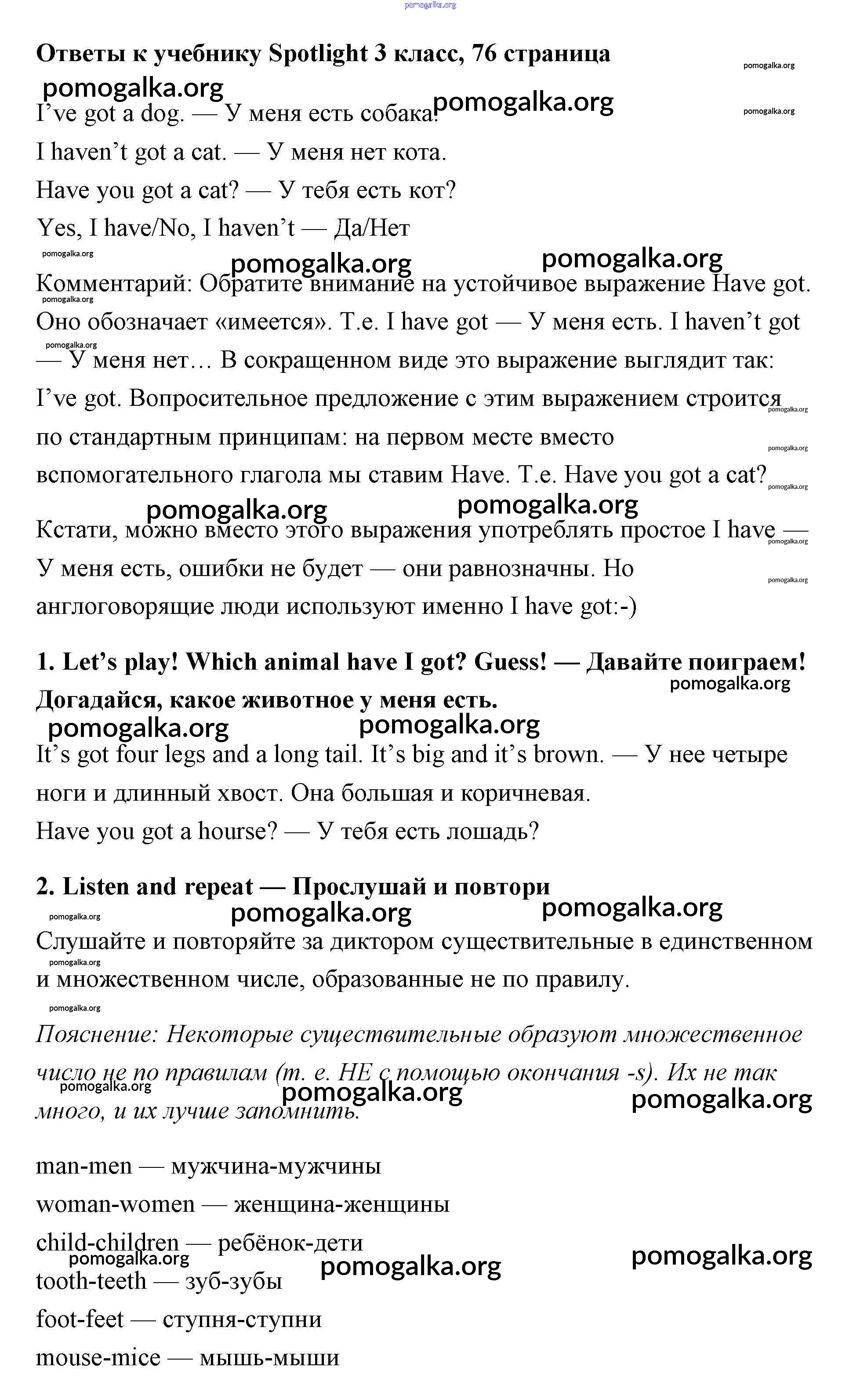Готовые ответы - Английский язык 3 класс Быкова - страница 76