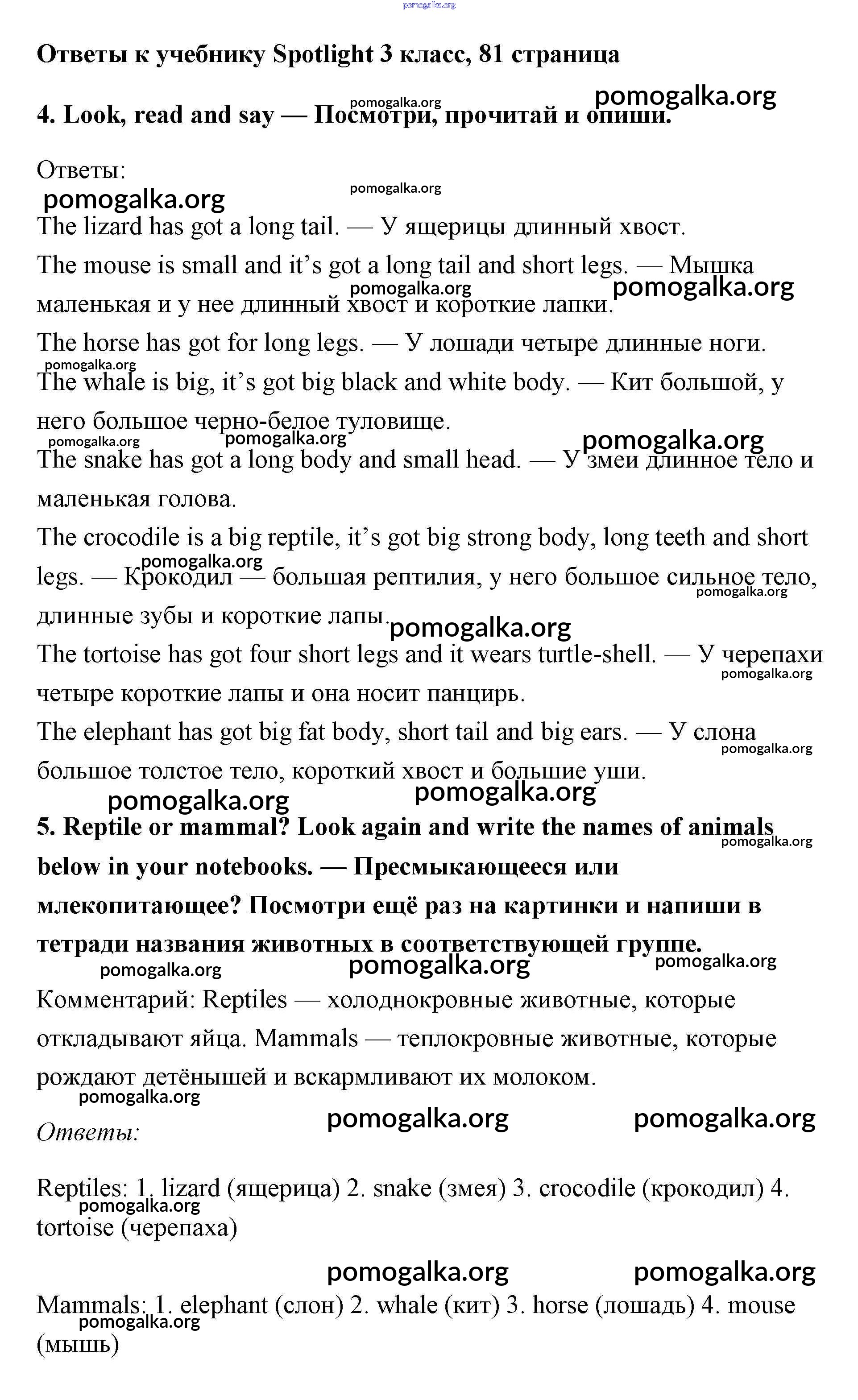 Готовые ответы - Английский язык 3 класс Быкова - страница 81