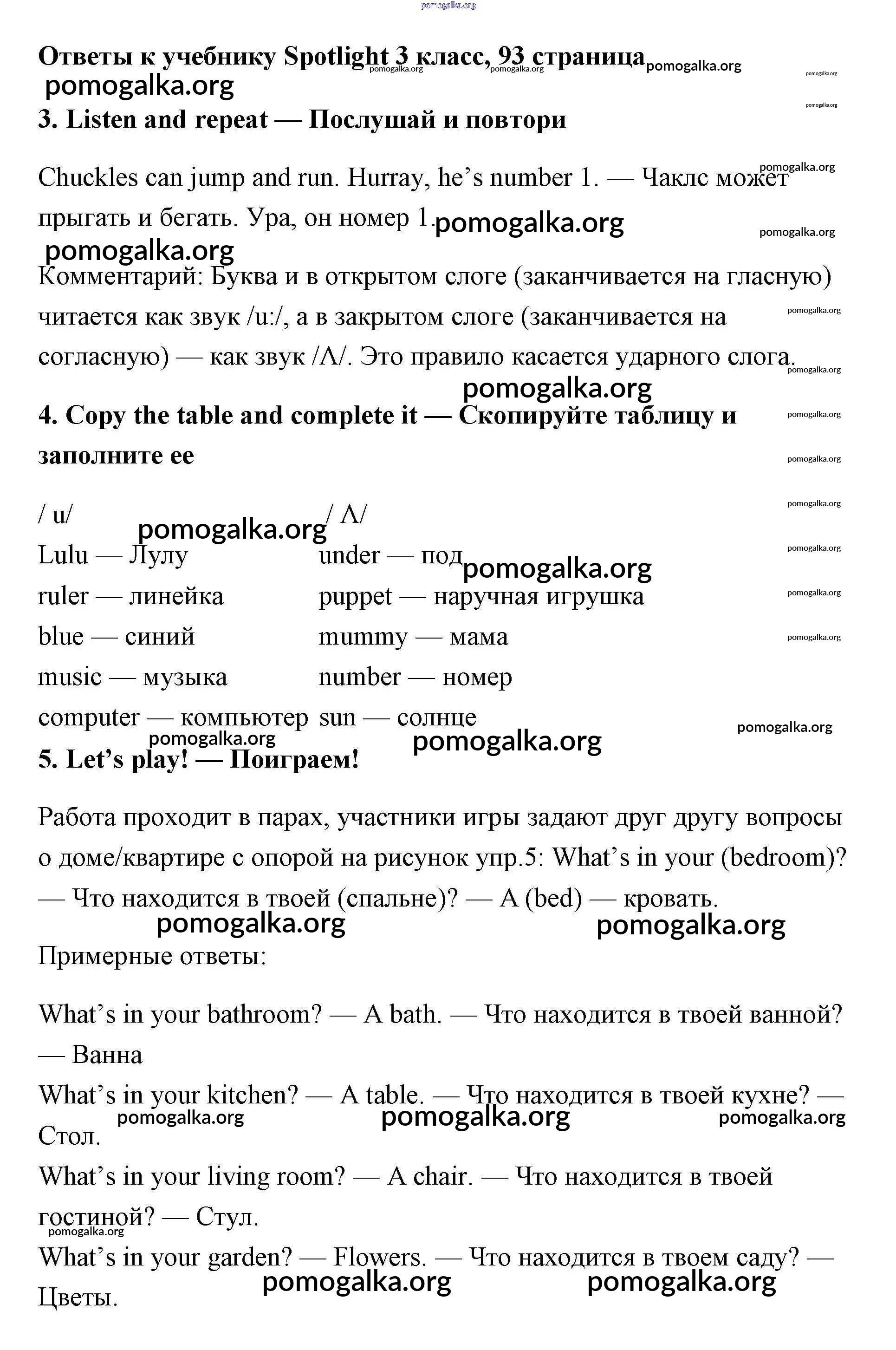 Готовые ответы - Английский язык 3 класс Быкова - страница 93