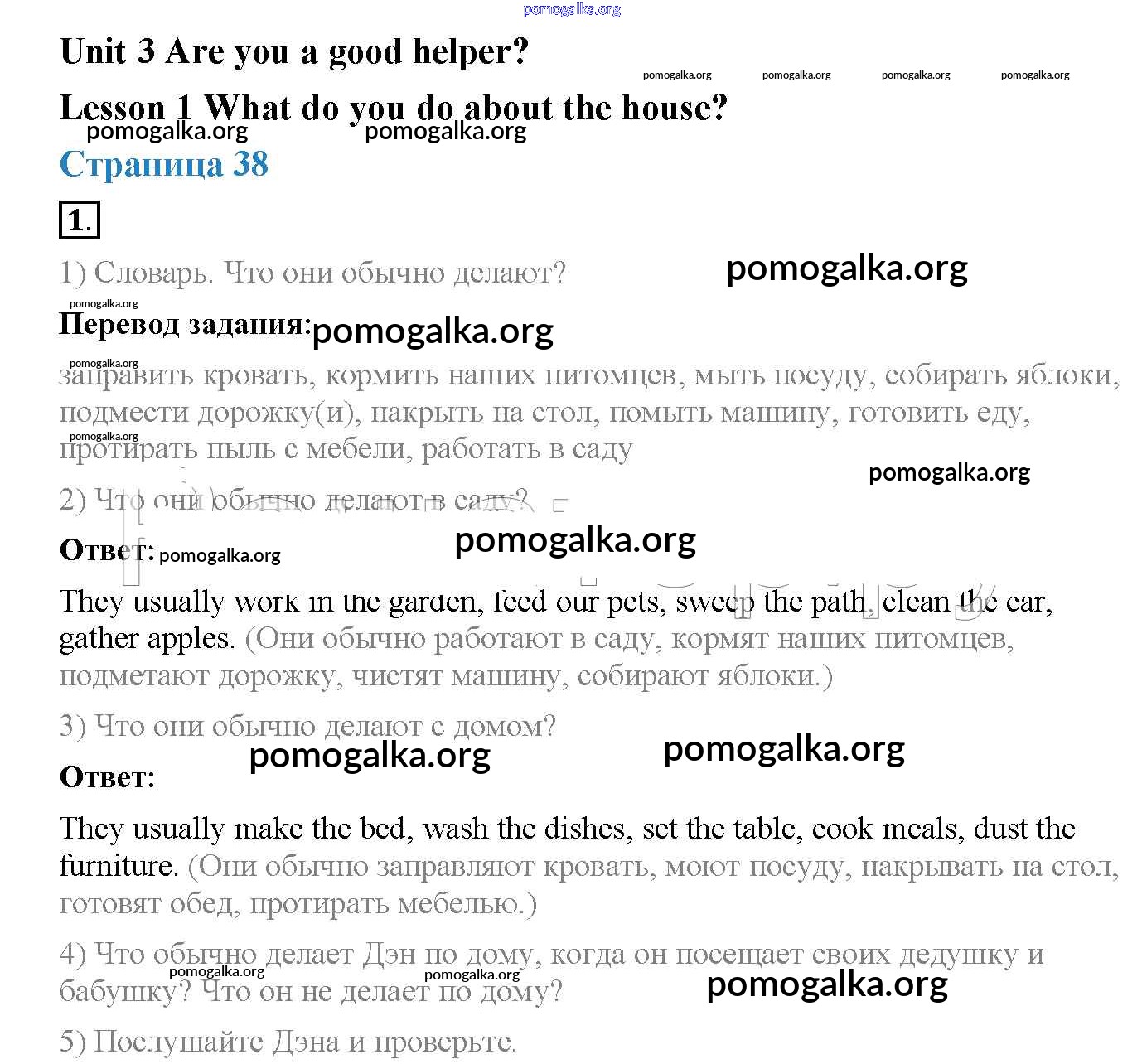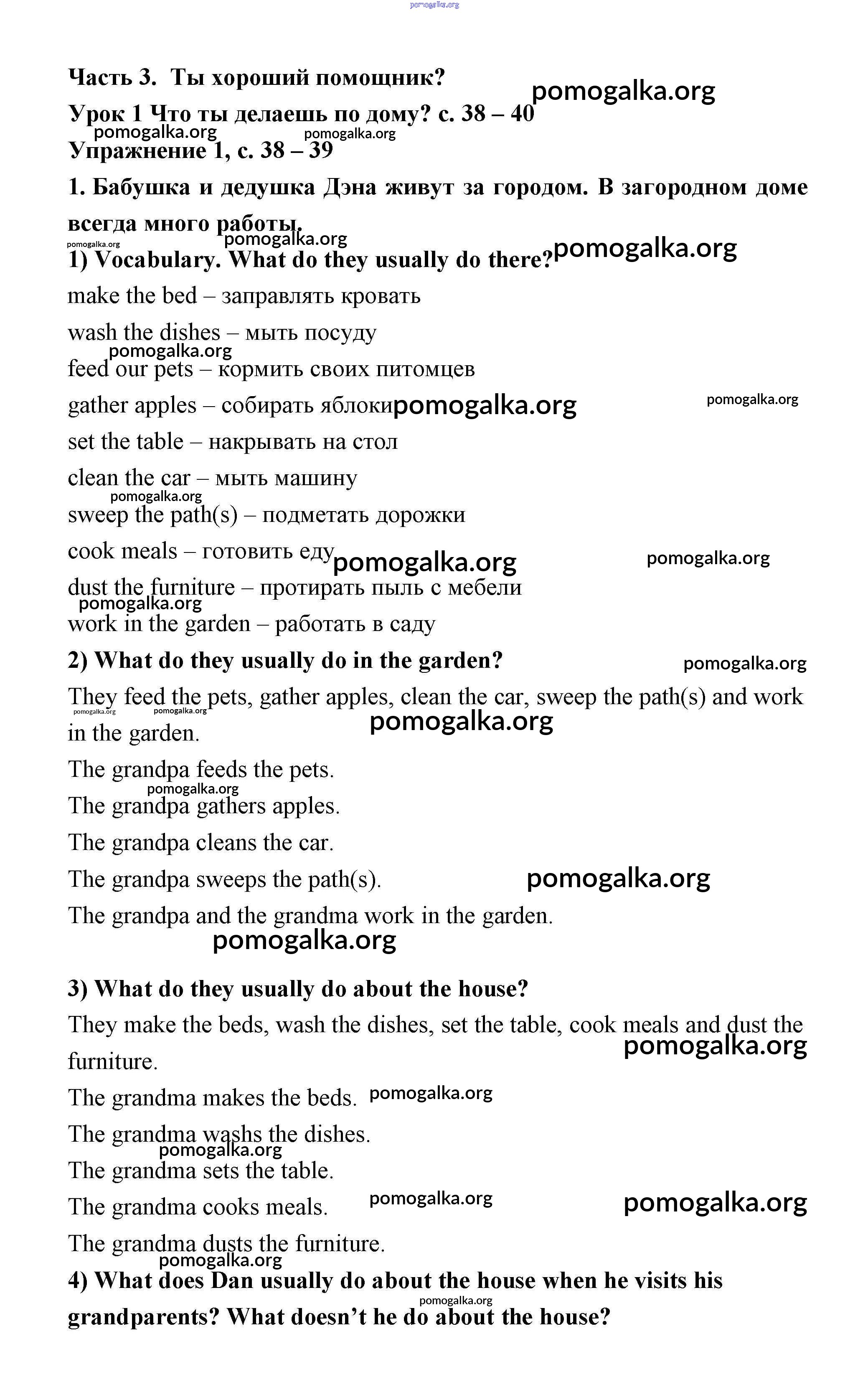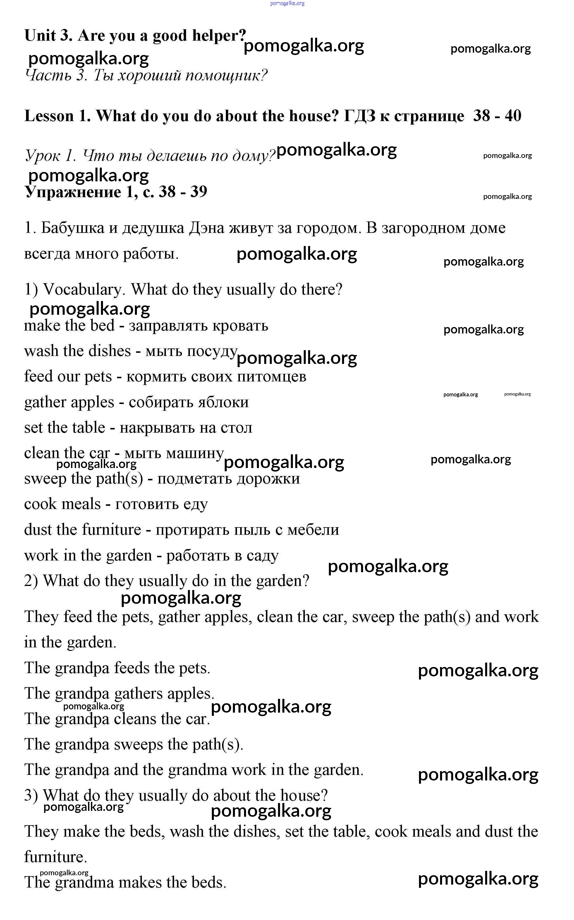 Готовые ответы - Английский язык 3 класс Кузовлёв - unit 3. Are you a good helper? (lesson) Lesson 1 (страницы 38 – 40)