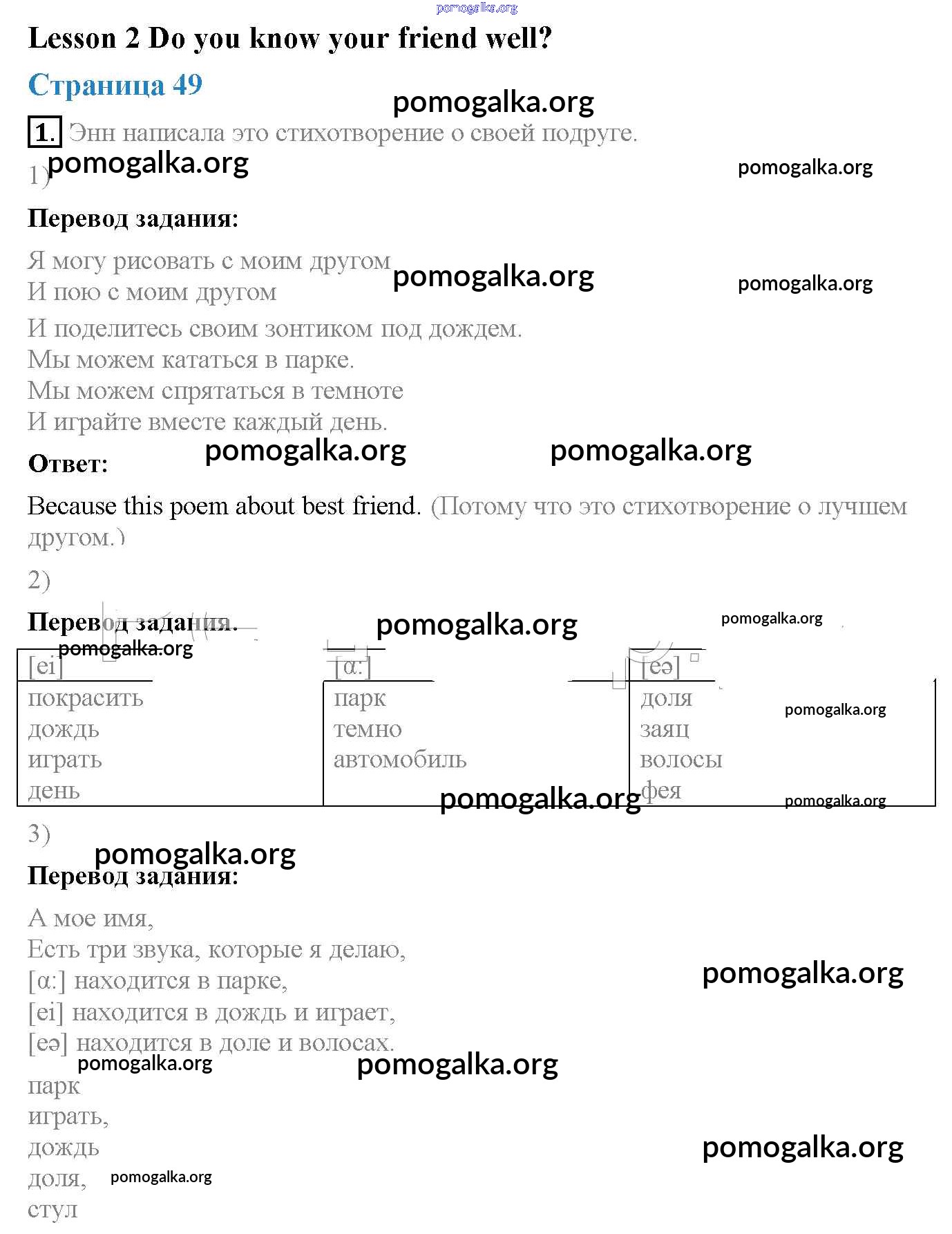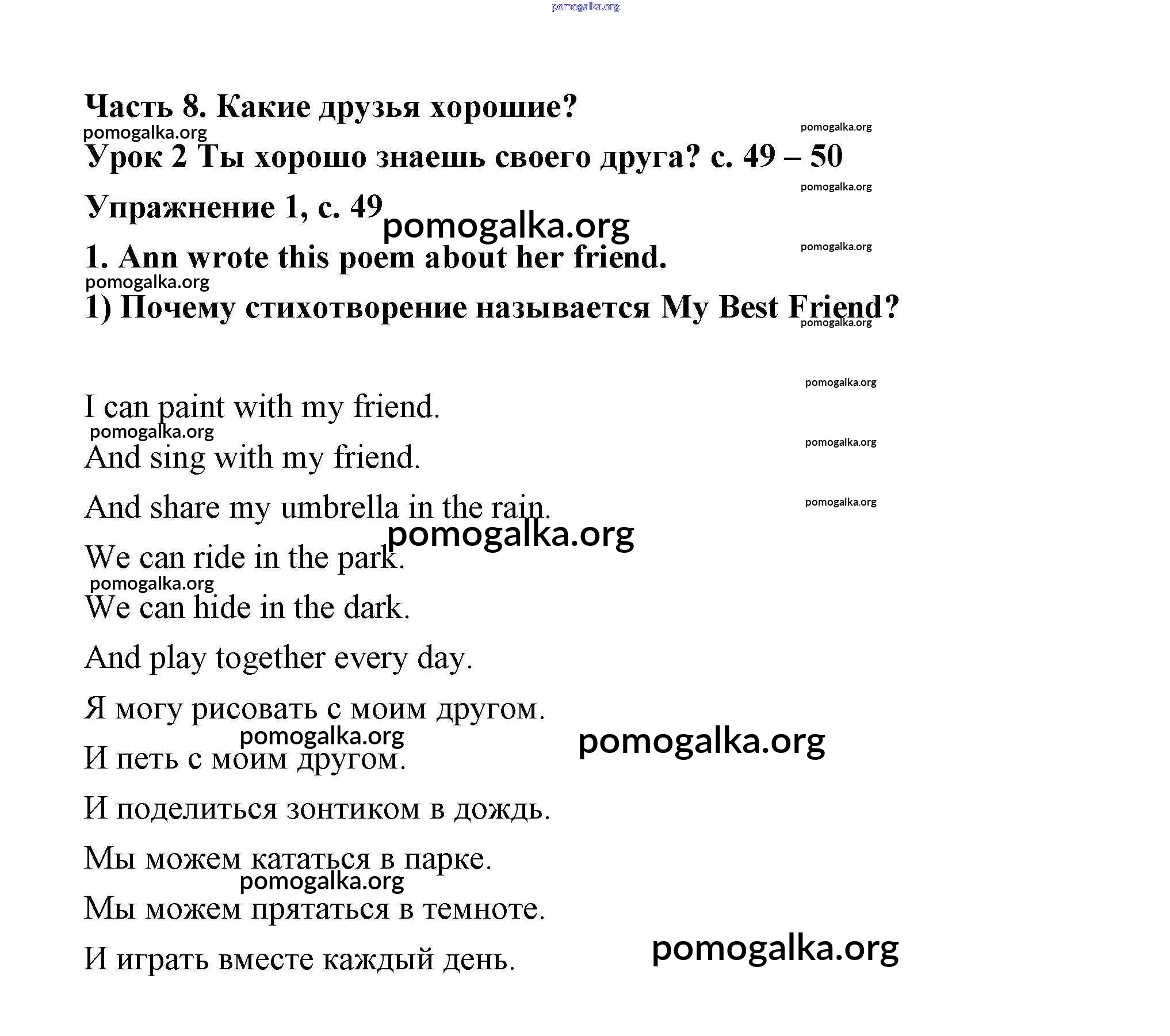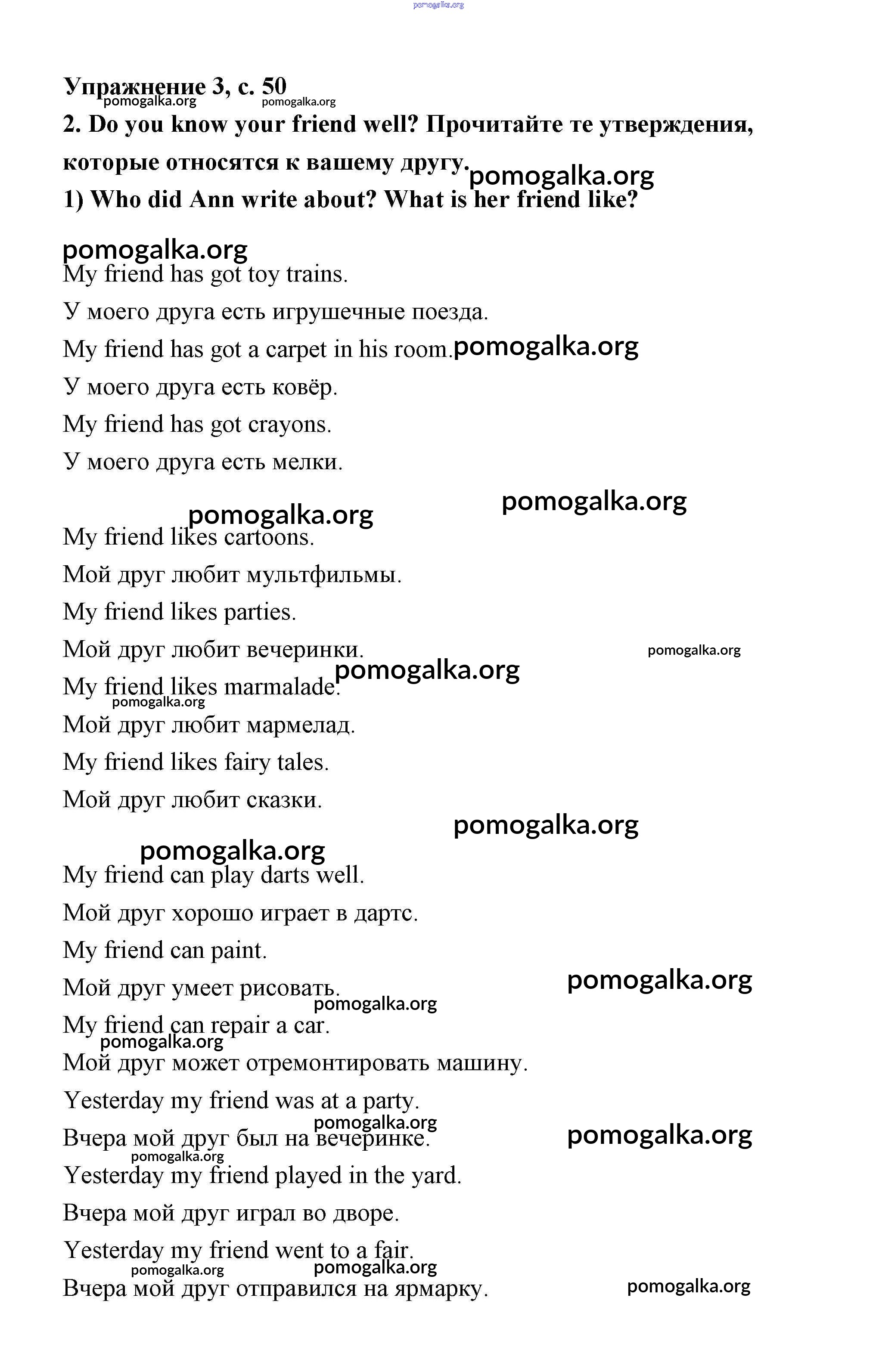 Готовые ответы - Английский язык 3 класс Кузовлёв - unit 8. What are good friends like? (lesson) Lesson 2 (страницы 49 – 50)