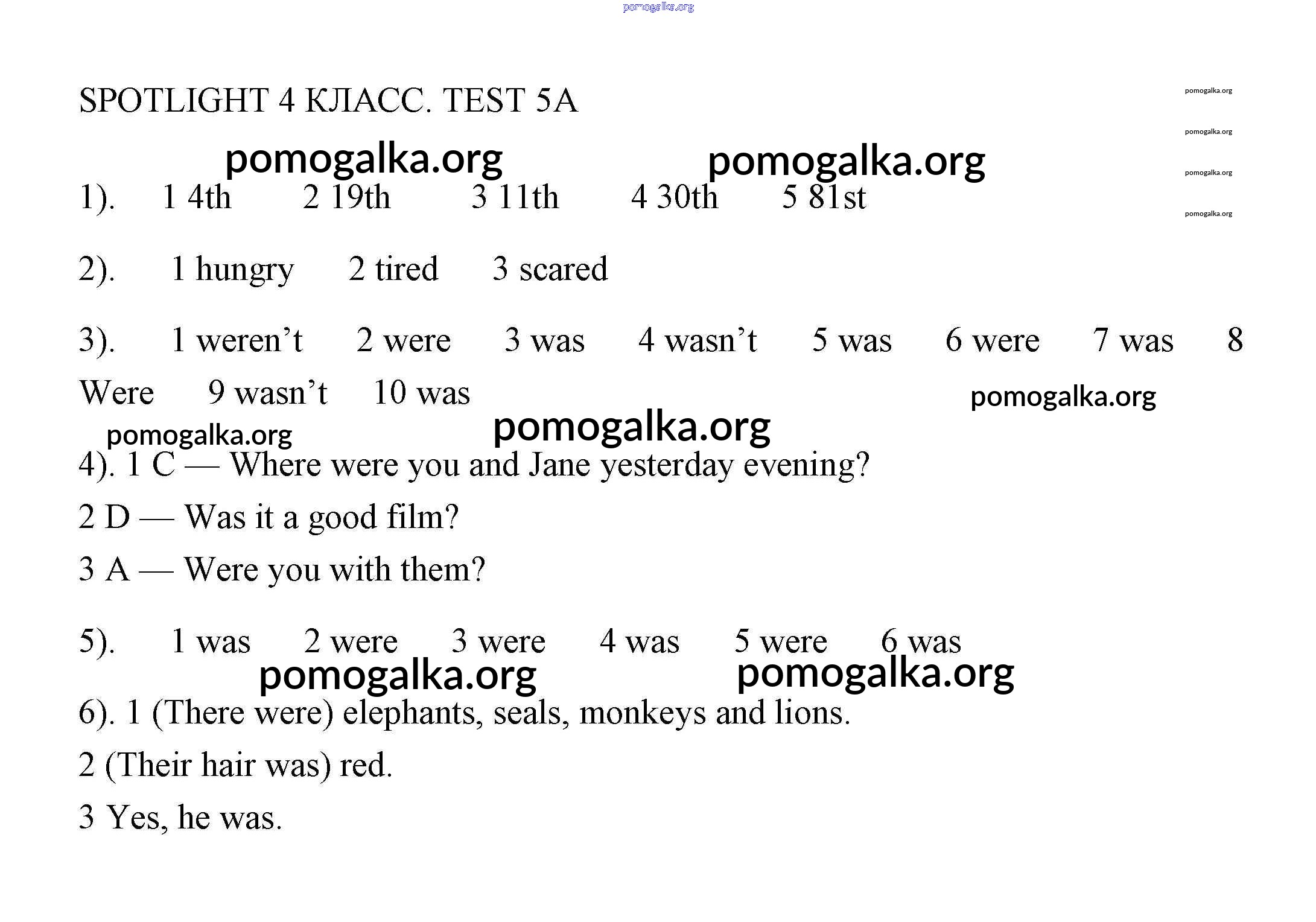 Готовые ответы - Английский язык 4 класс контрольные задания Быкова Spotlight - контрольная работа 5 5A