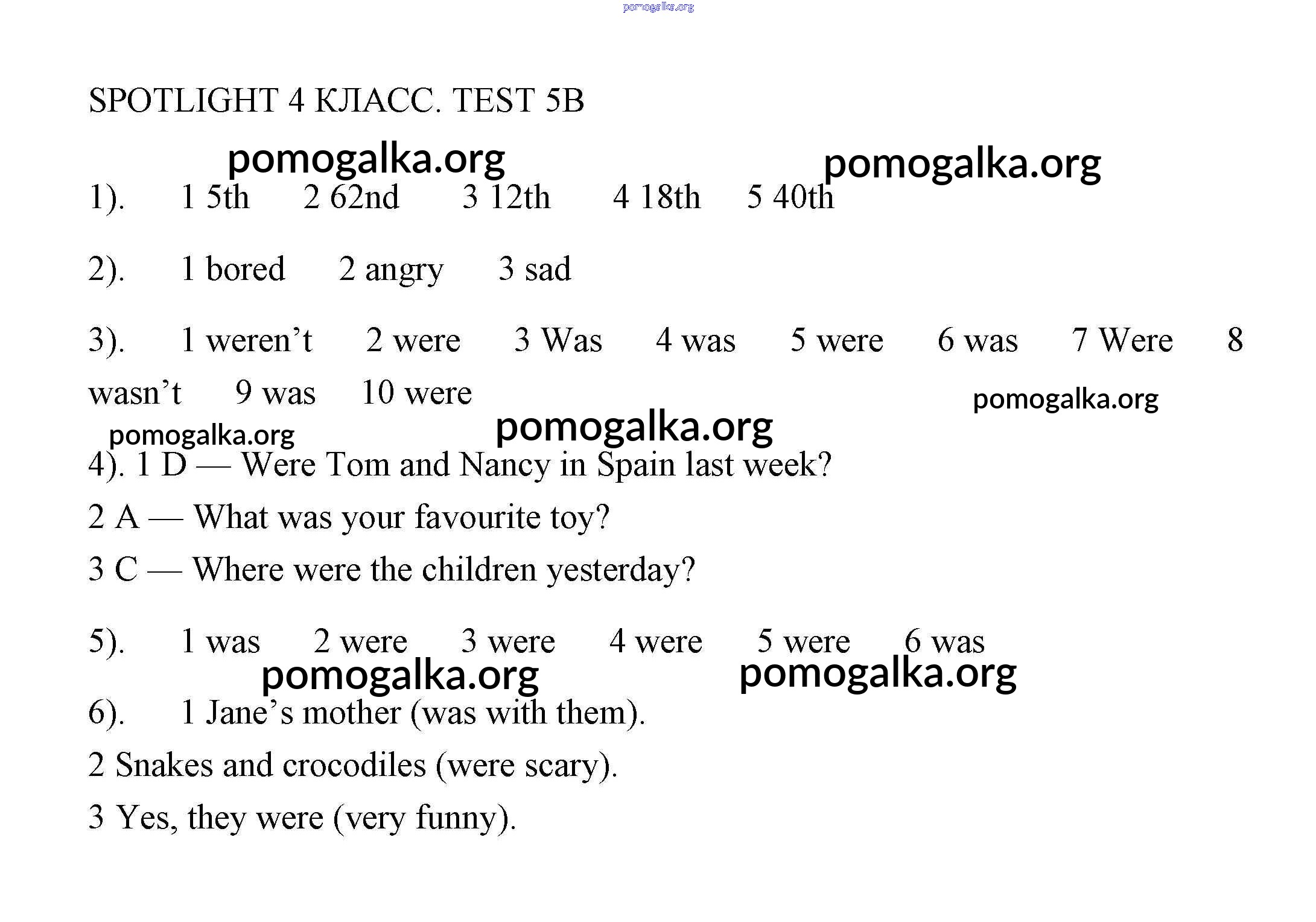 Готовые ответы - Английский язык 4 класс контрольные задания Быкова Spotlight - контрольная работа 5 5B