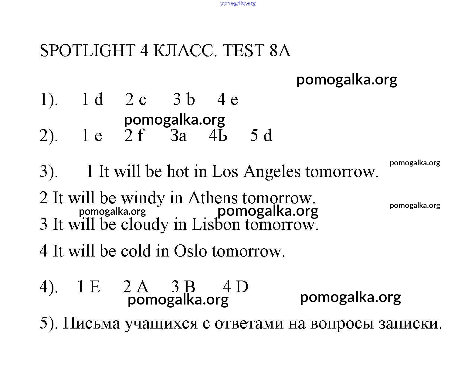 Готовые ответы - Английский язык 4 класс контрольные задания Быкова Spotlight - контрольная работа 8 8A