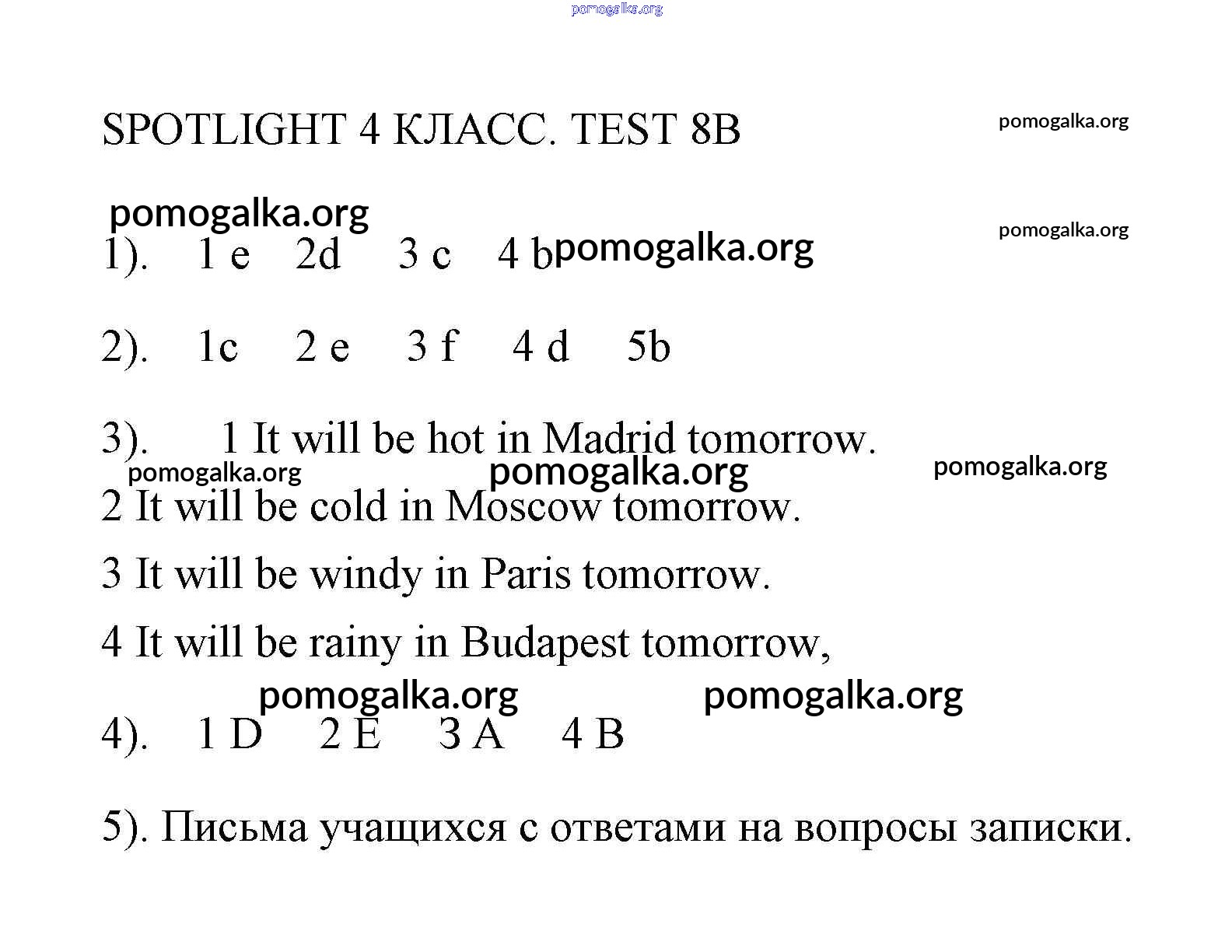 Готовые ответы - Английский язык 4 класс контрольные задания Быкова Spotlight - контрольная работа 8 8B