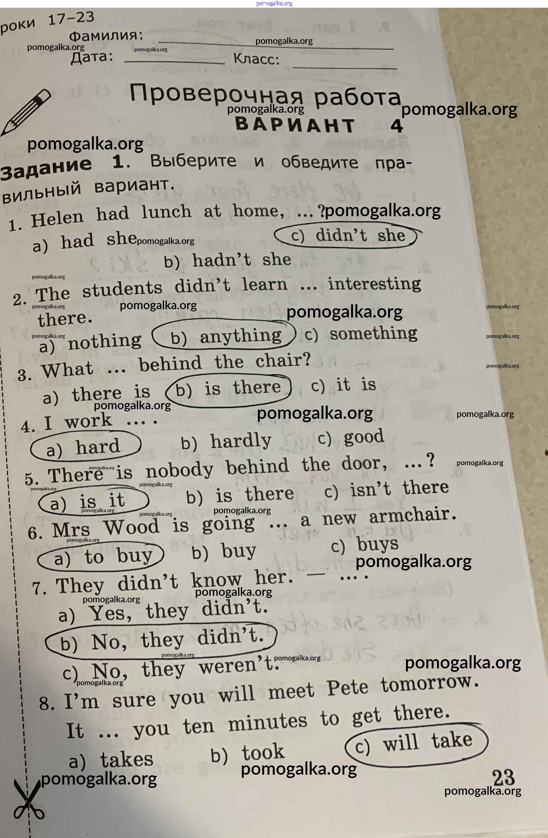 Готовые ответы - Английский язык. Грамматика английского языка 4 класс проверочные работы Барашкова Е.А. (к уч. Верещагиной) - страница 23