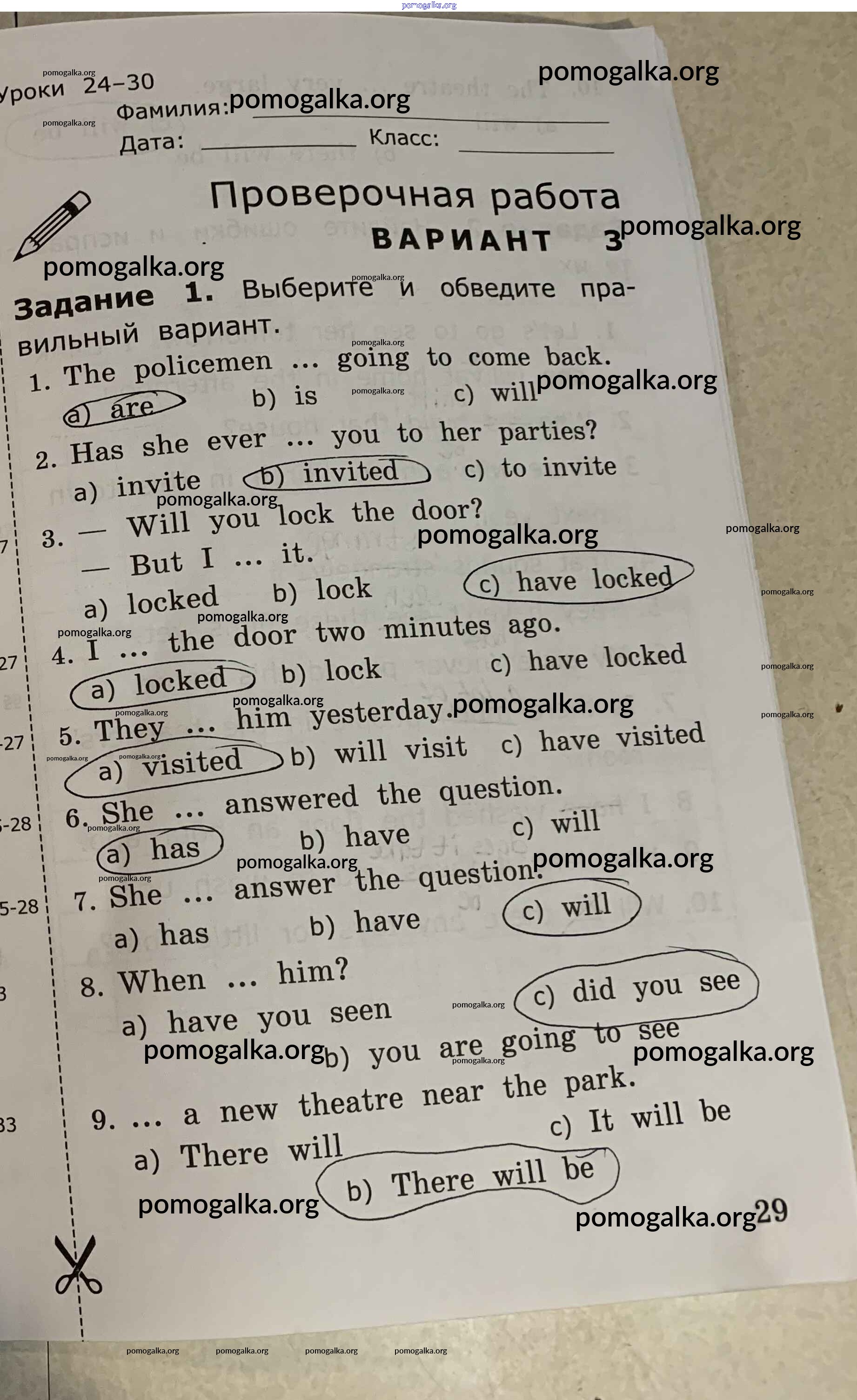 Готовые ответы - Английский язык. Грамматика английского языка 4 класс проверочные работы Барашкова Е.А. (к уч. Верещагиной) - страница 29