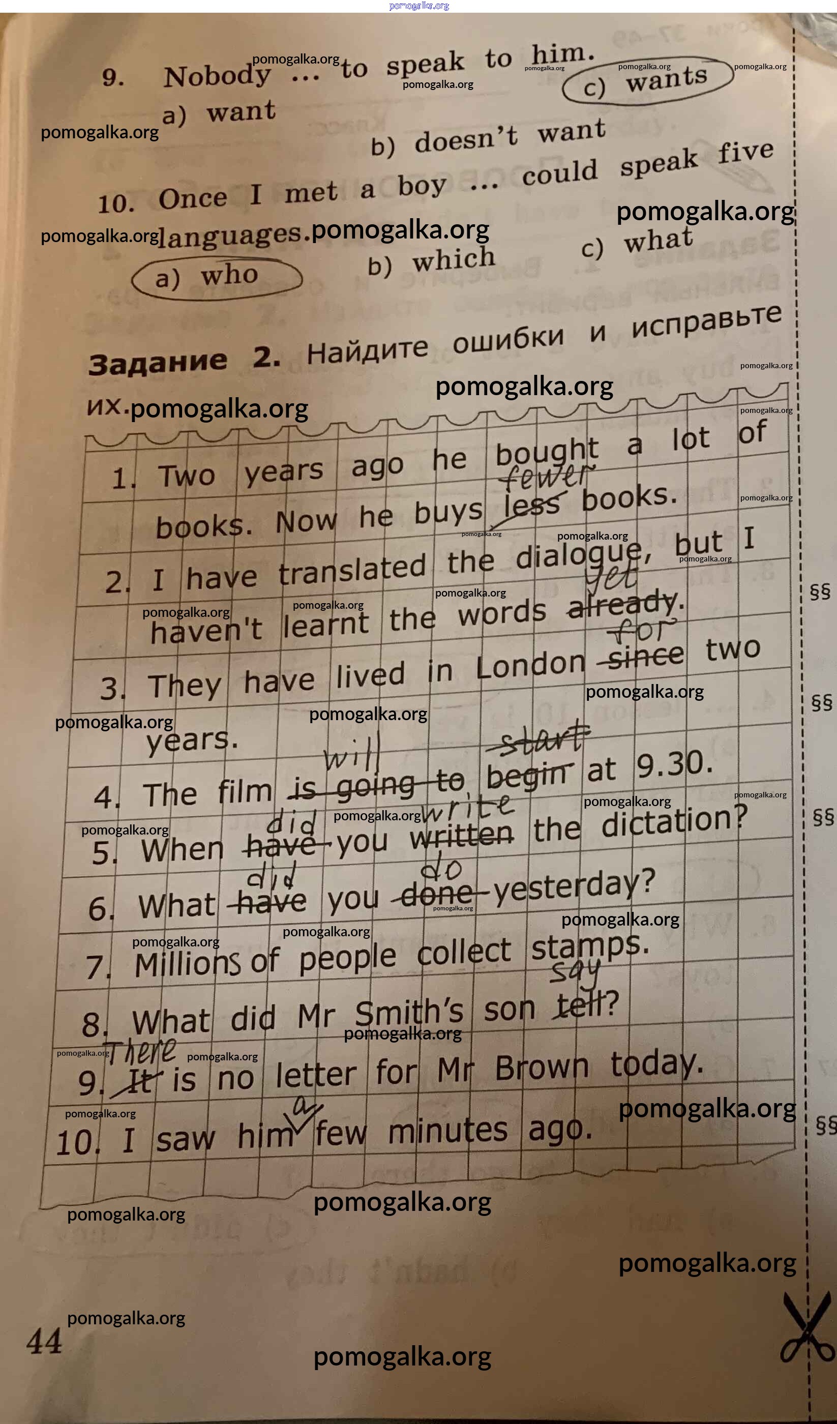 Готовые ответы - Английский язык. Грамматика английского языка 4 класс проверочные работы Барашкова Е.А. (к уч. Верещагиной) - страница 44