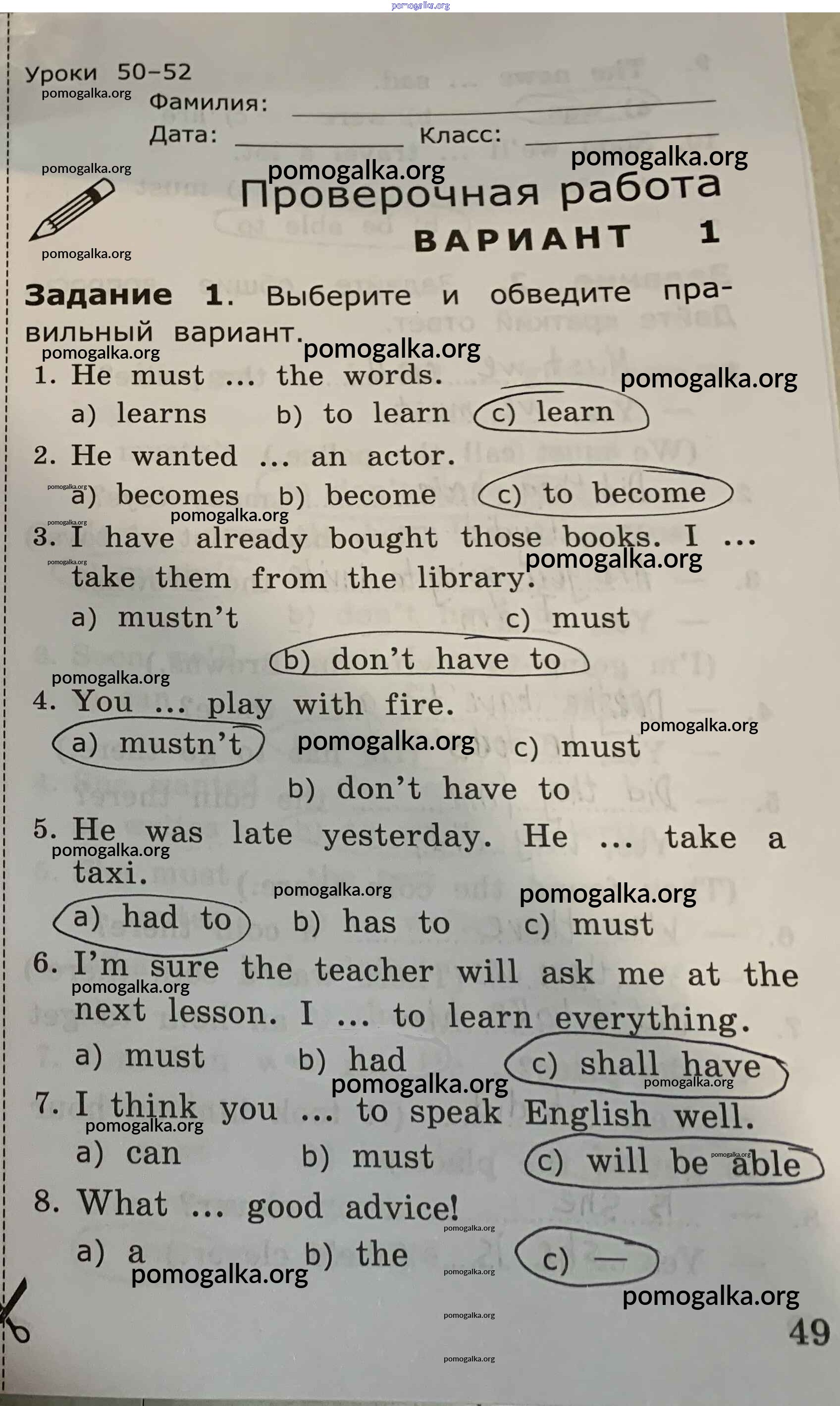 Готовые ответы - Английский язык. Грамматика английского языка 4 класс проверочные работы Барашкова Е.А. (к уч. Верещагиной) - страница 49