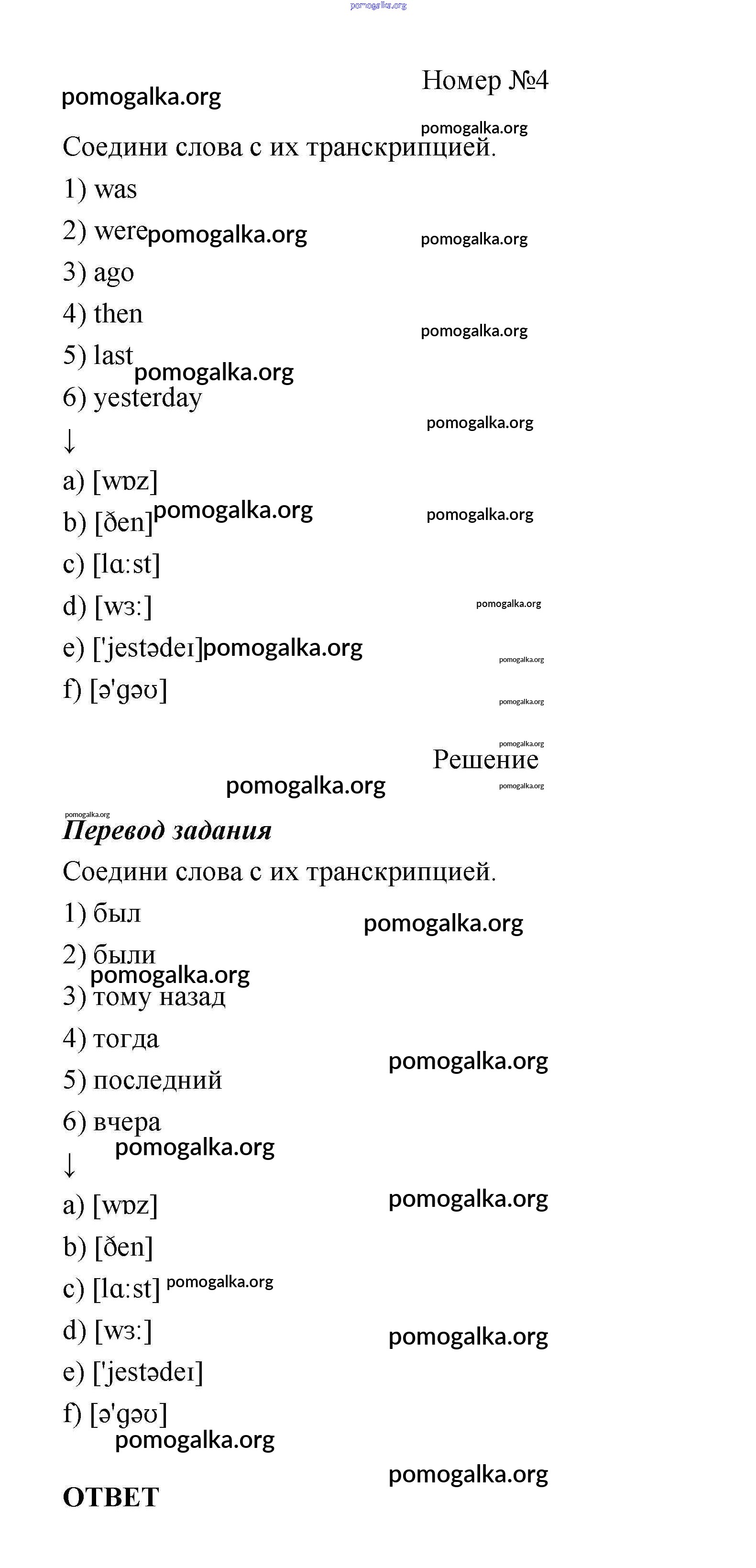 Готовые ответы - Английский язык 4 класс рабочая тетрадь Афанасьева О. В. - step 1 unit 6 4