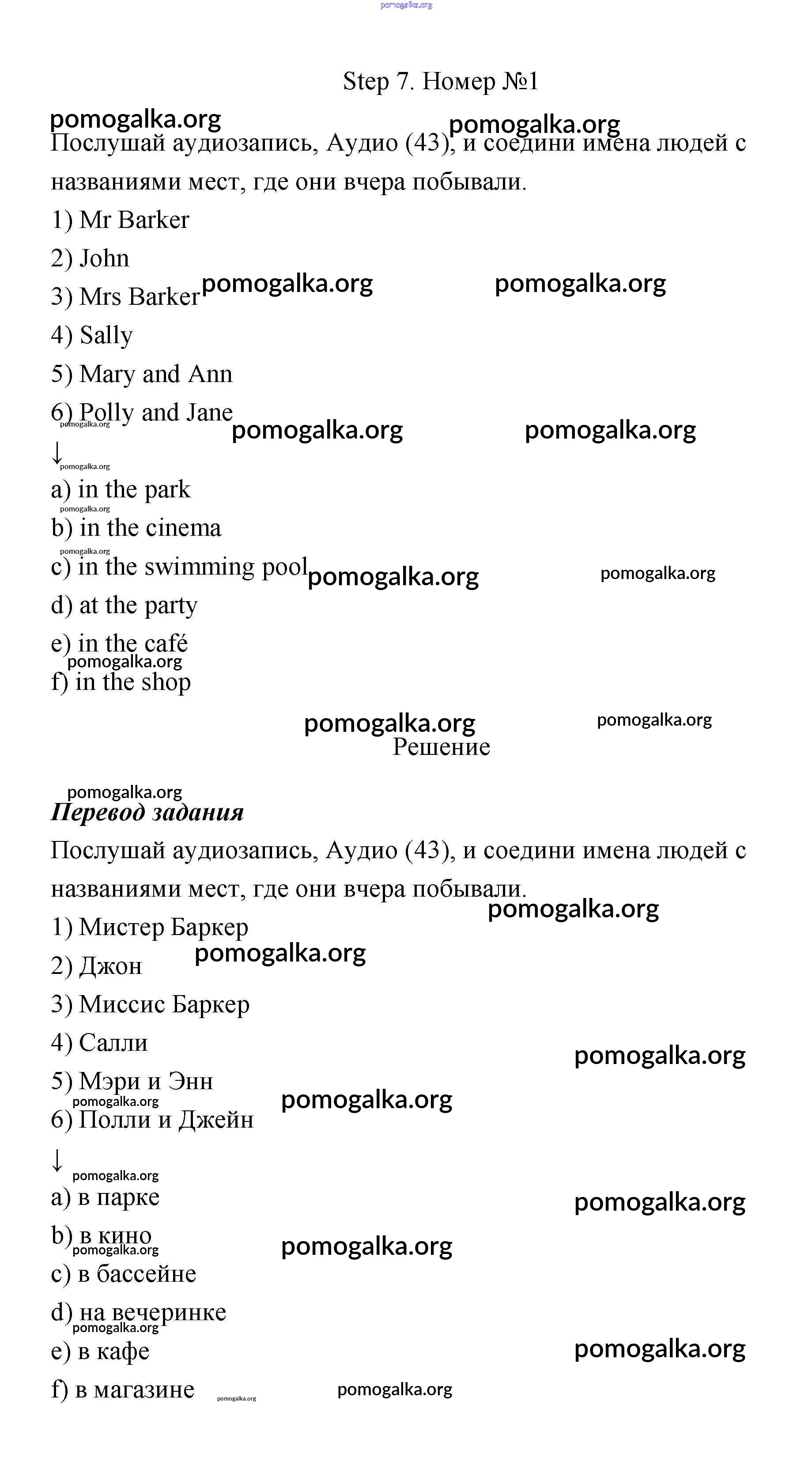 Готовые ответы - Английский язык 4 класс рабочая тетрадь Афанасьева О. В. - step 7 unit 6 1