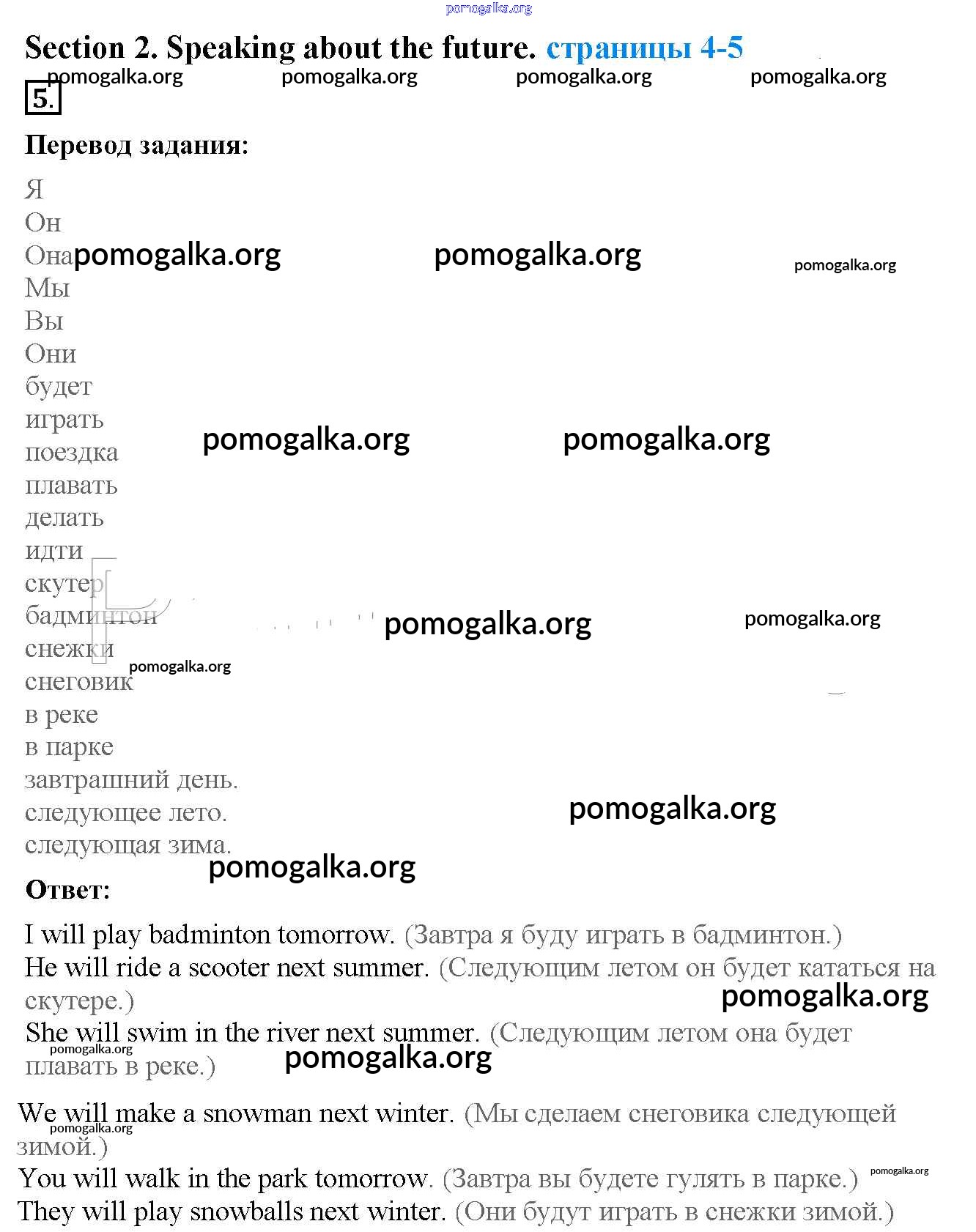 Готовые ответы - Английский язык 4 класс рабочая тетрадь Биболетова - exercise unit 1 5