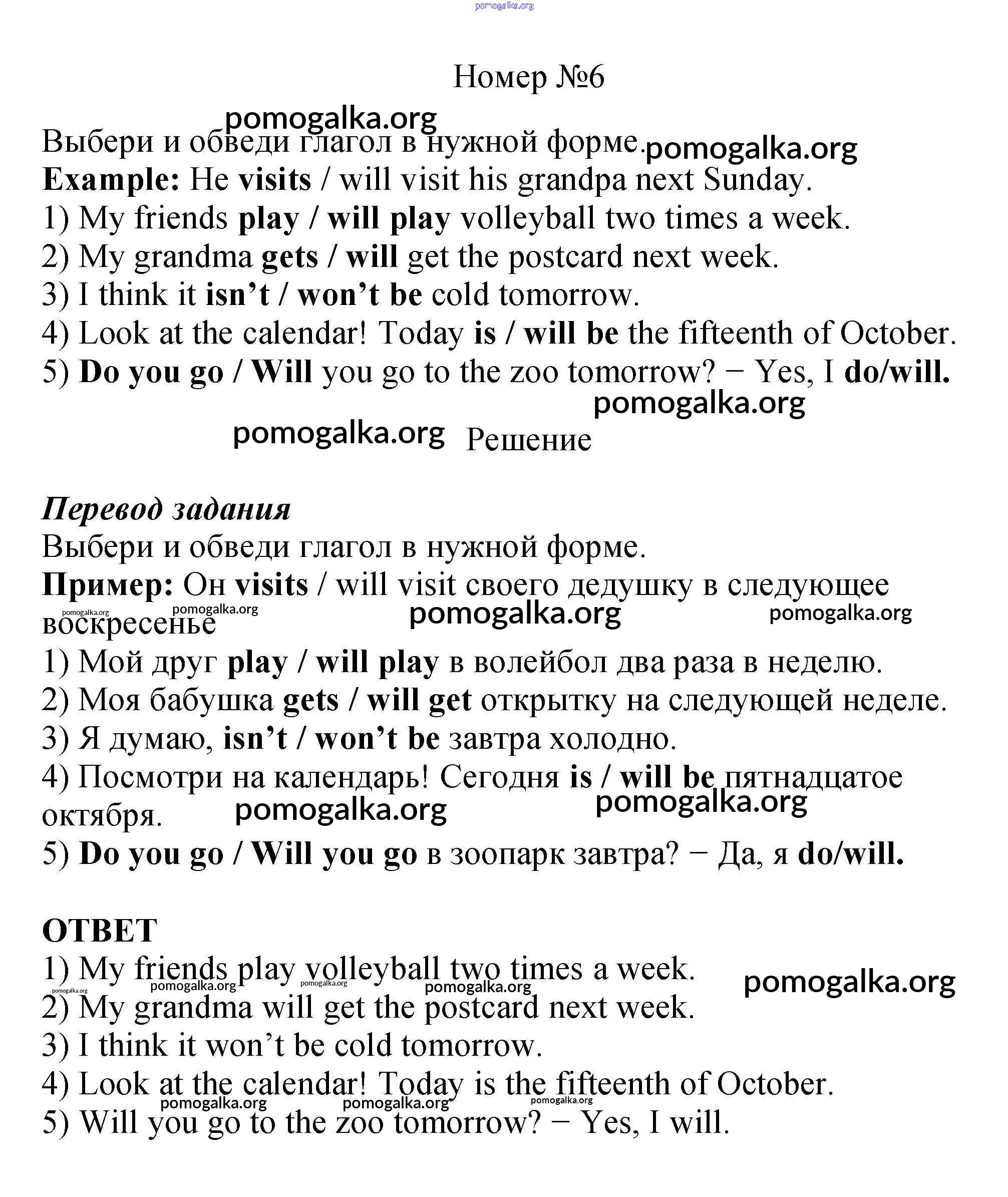 Готовые ответы - Английский язык 4 класс рабочая тетрадь Биболетова - exercise unit 1 6