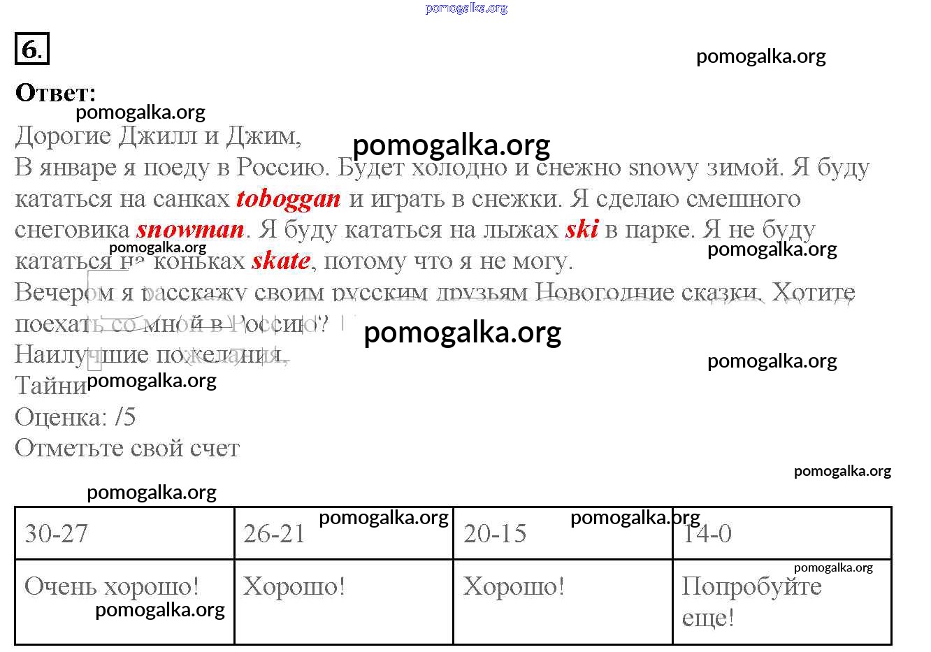 Готовые ответы - Английский язык 4 класс рабочая тетрадь Биболетова - test yourself 1 unit 1 6