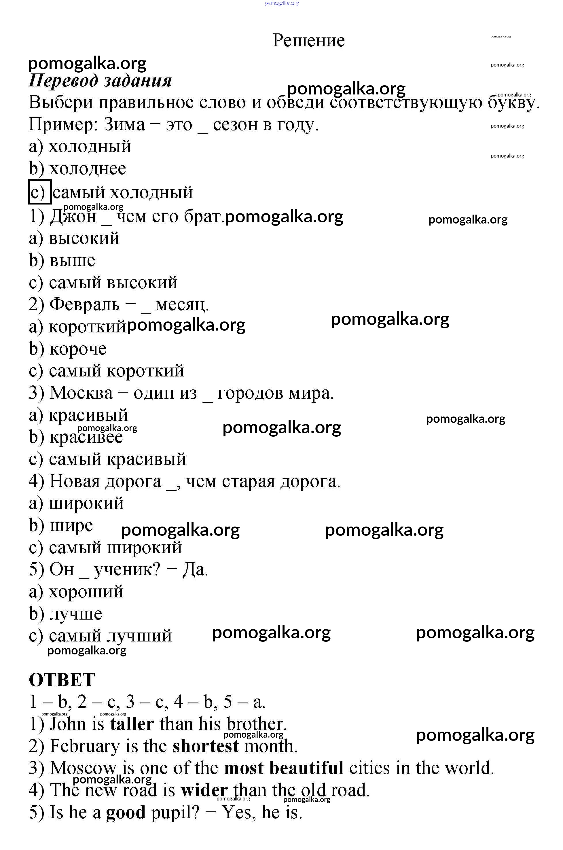 Готовые ответы - Английский язык 4 класс рабочая тетрадь Биболетова - test yourself 3 unit 3 4