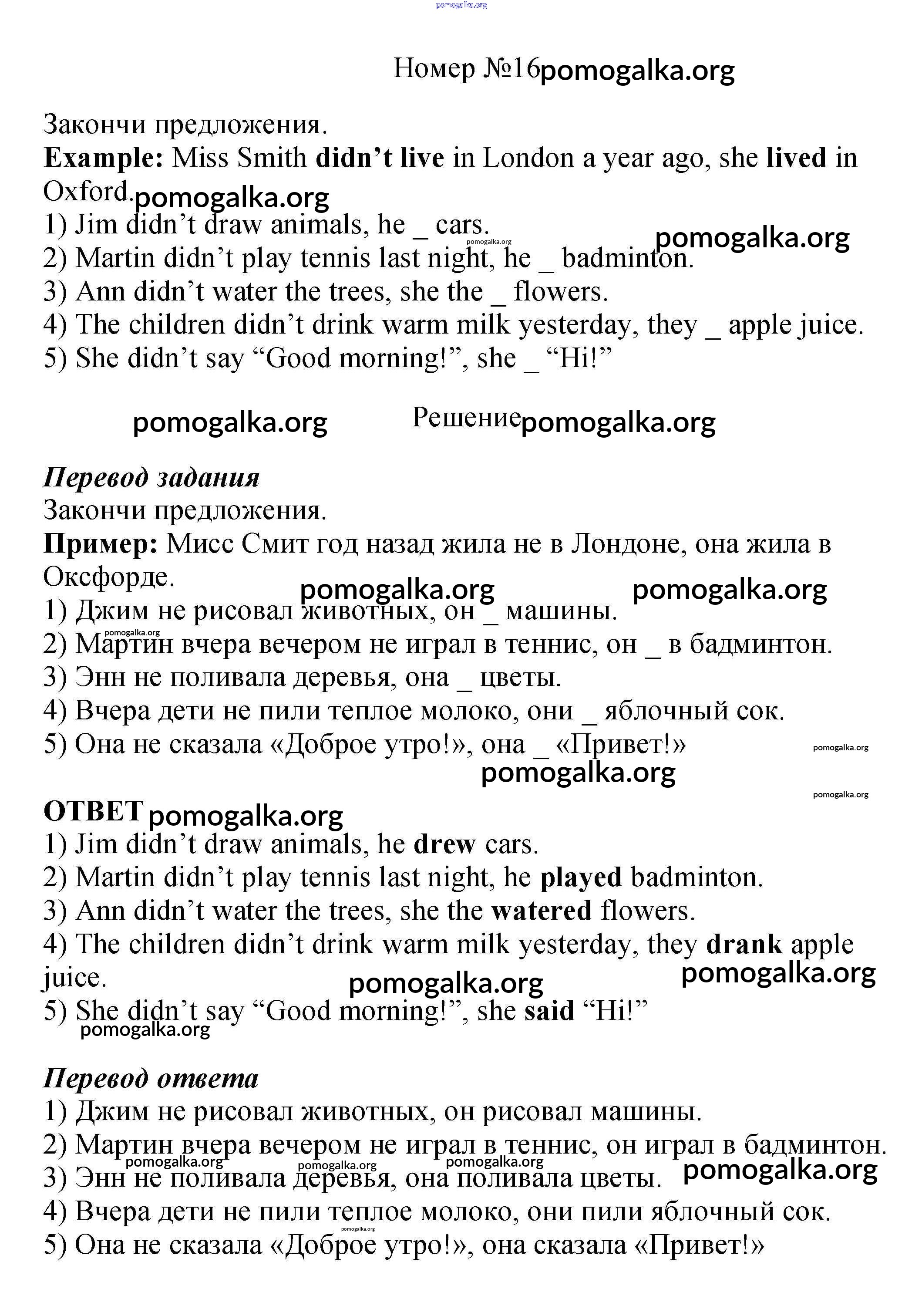 Готовые ответы - Английский язык 4 класс рабочая тетрадь Биболетова - exercise unit 4 16