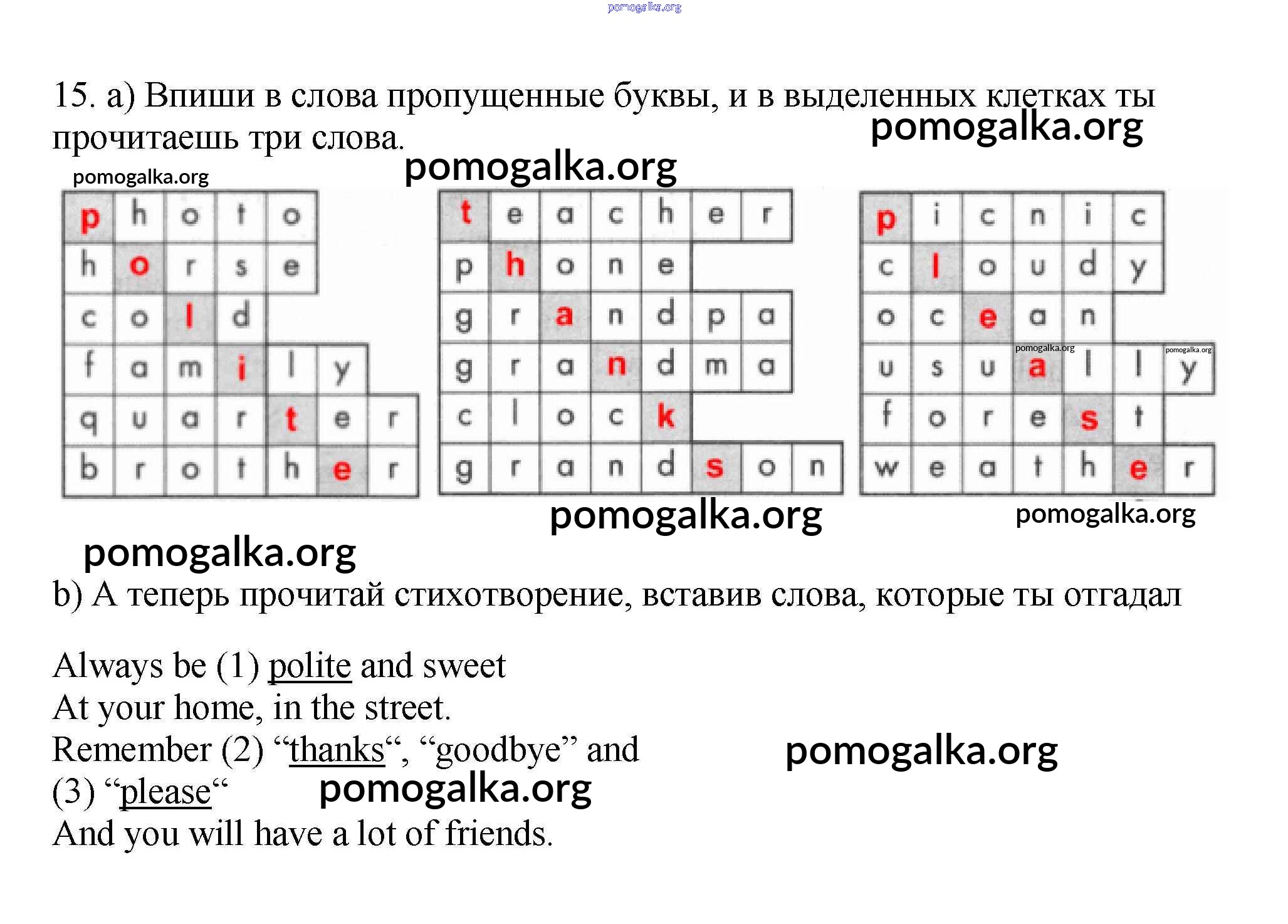 Готовые ответы - Английский язык 4 класс рабочая тетрадь Биболетова - exercise unit 5 15