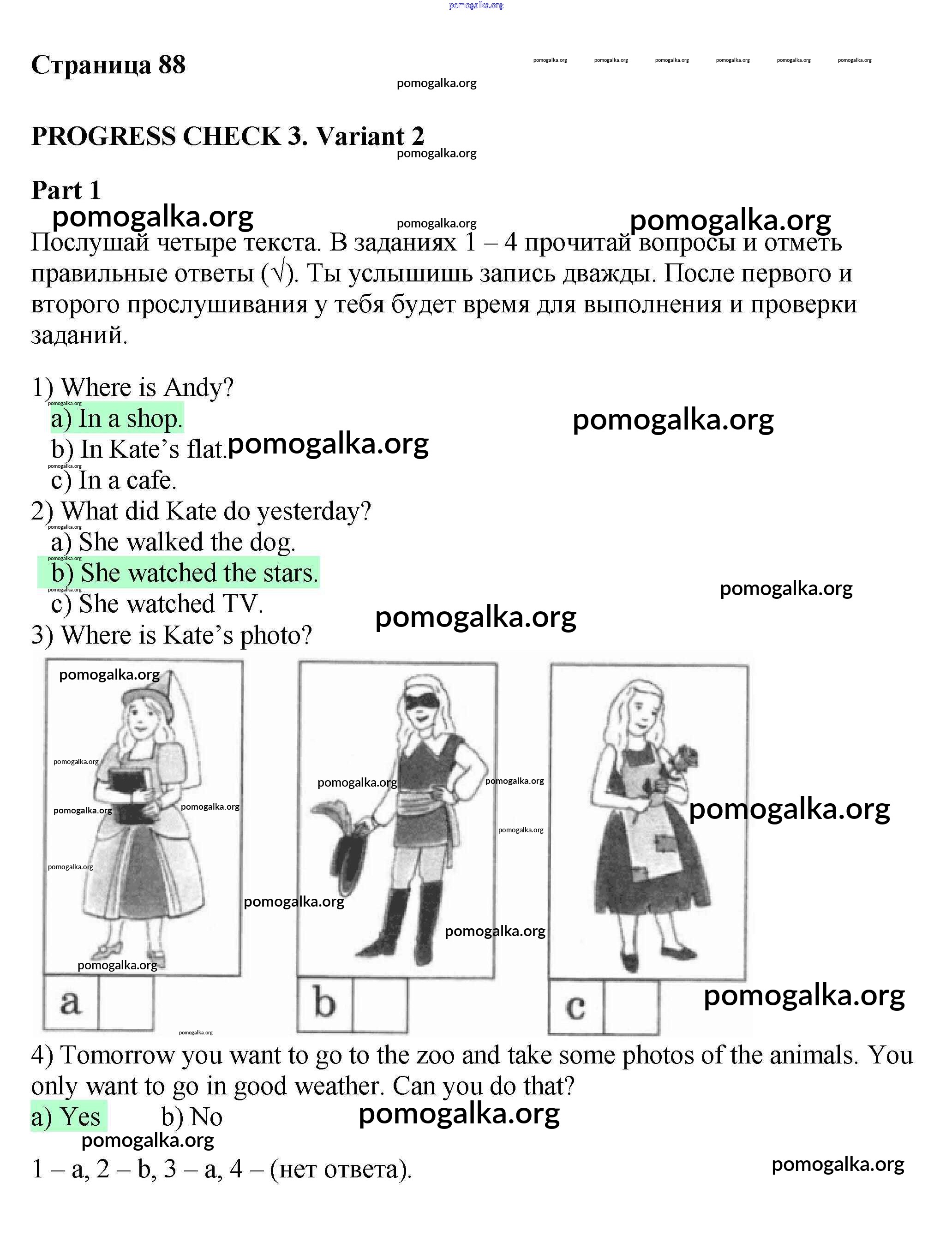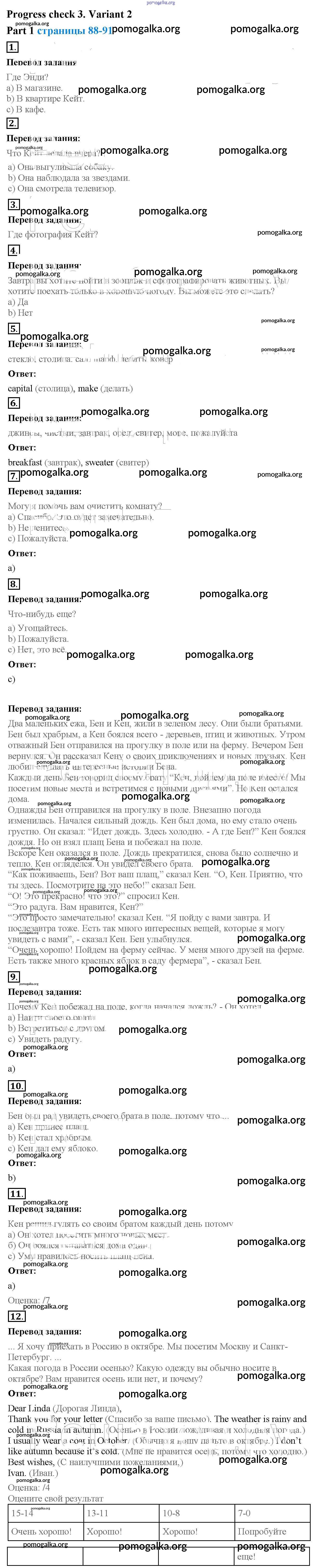 Готовые ответы - Английский язык 4 класс рабочая тетрадь Биболетова - variant 2 progress check 3 1