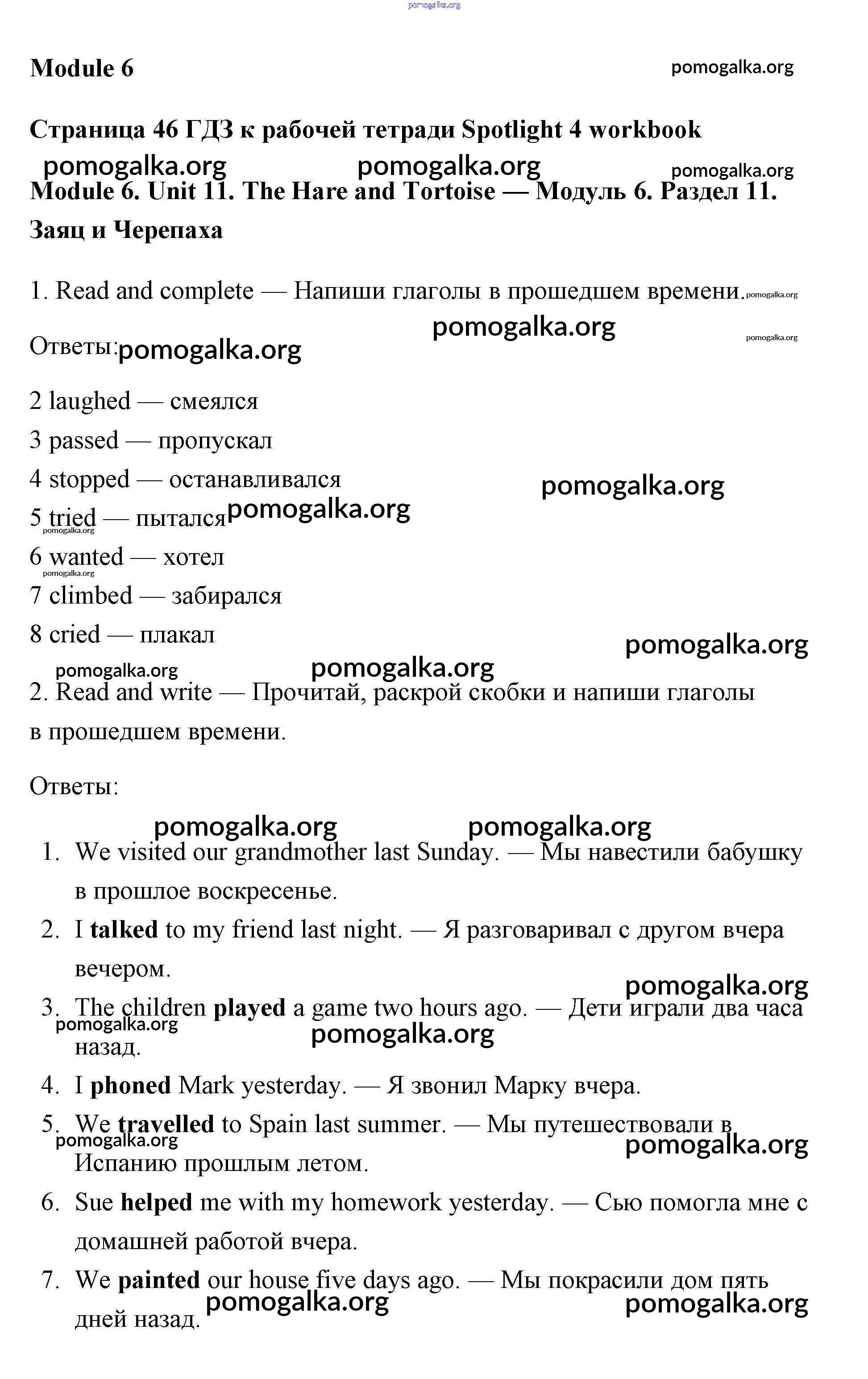 Готовые ответы - Английский язык 4 класс рабочая тетрадь Быкова - unit 11 module 6 страница 46