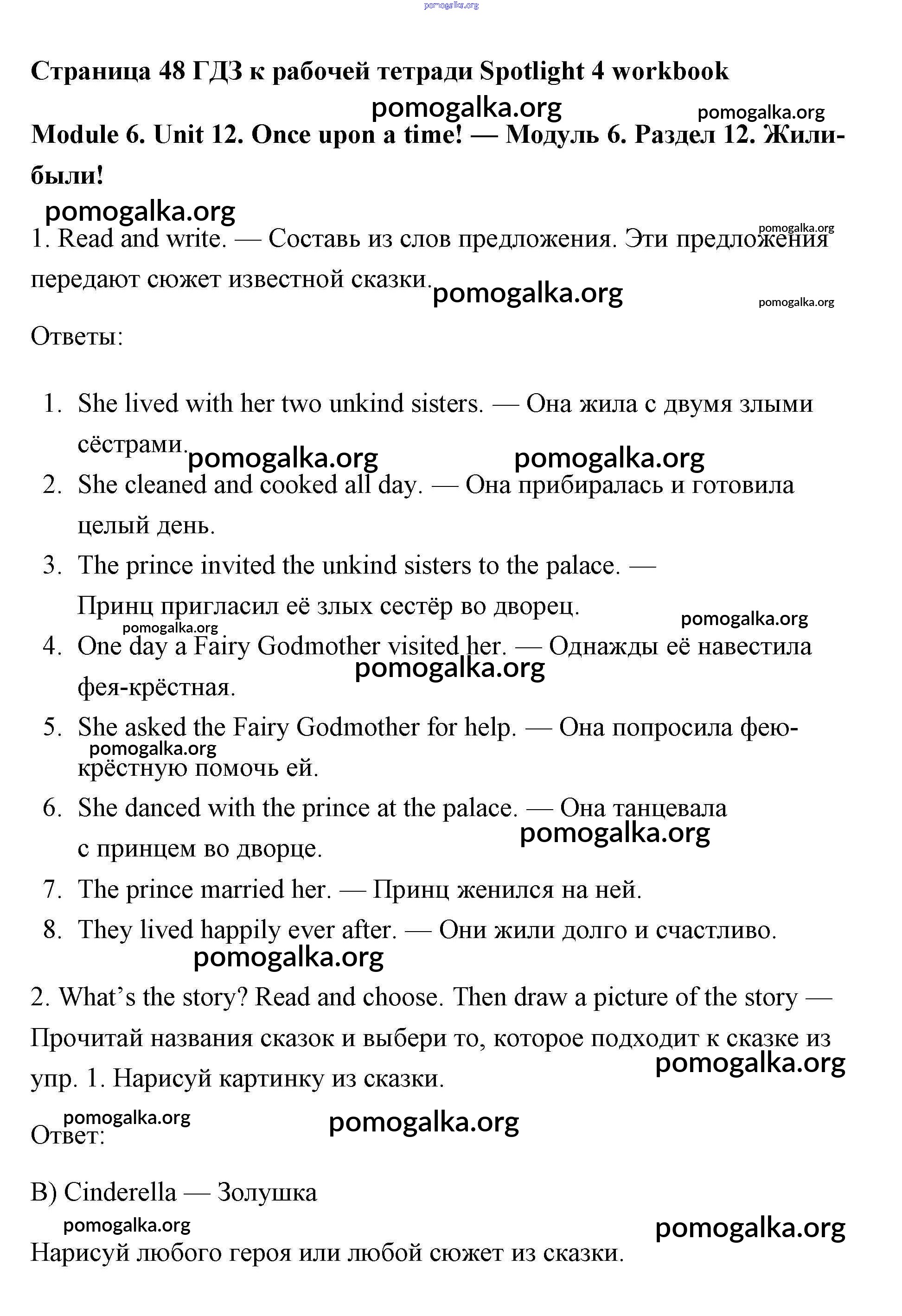 Готовые ответы - Английский язык 4 класс рабочая тетрадь Быкова - unit 12 module 6 страница 48