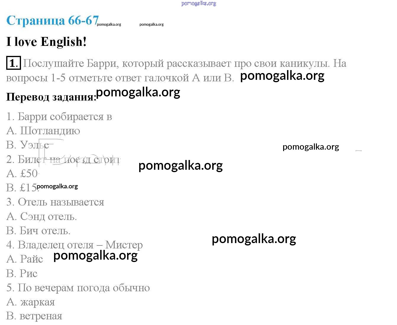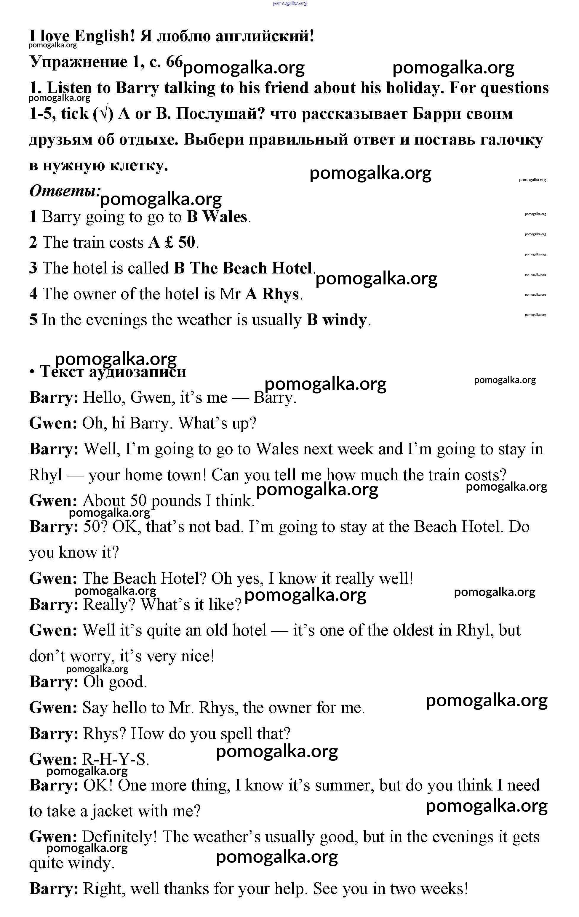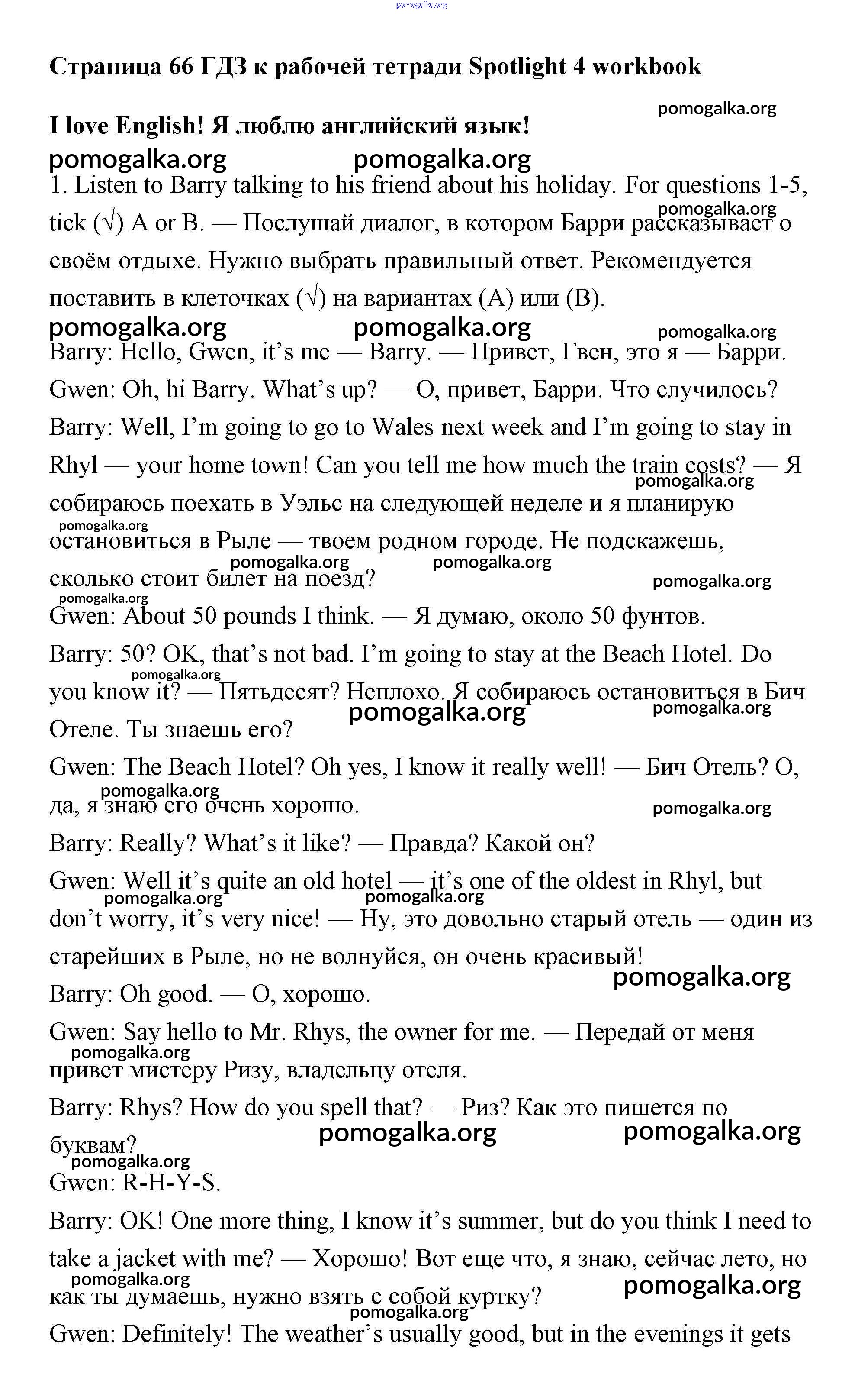 Готовые ответы - Английский язык 4 класс рабочая тетрадь Быкова - I love English module 8 страница 66