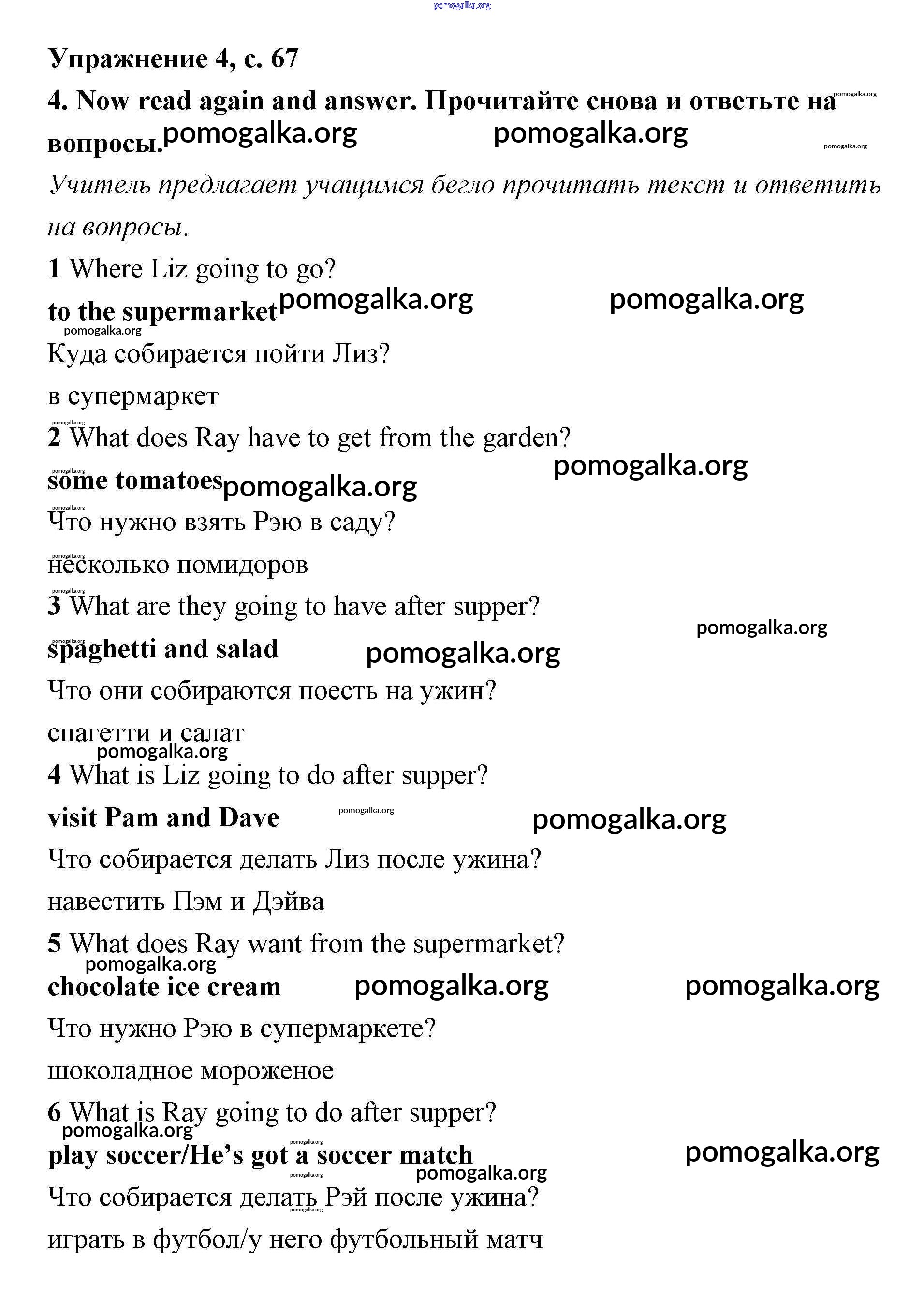 Готовые ответы - Английский язык 4 класс рабочая тетрадь Быкова - I love English module 8 страница 67
