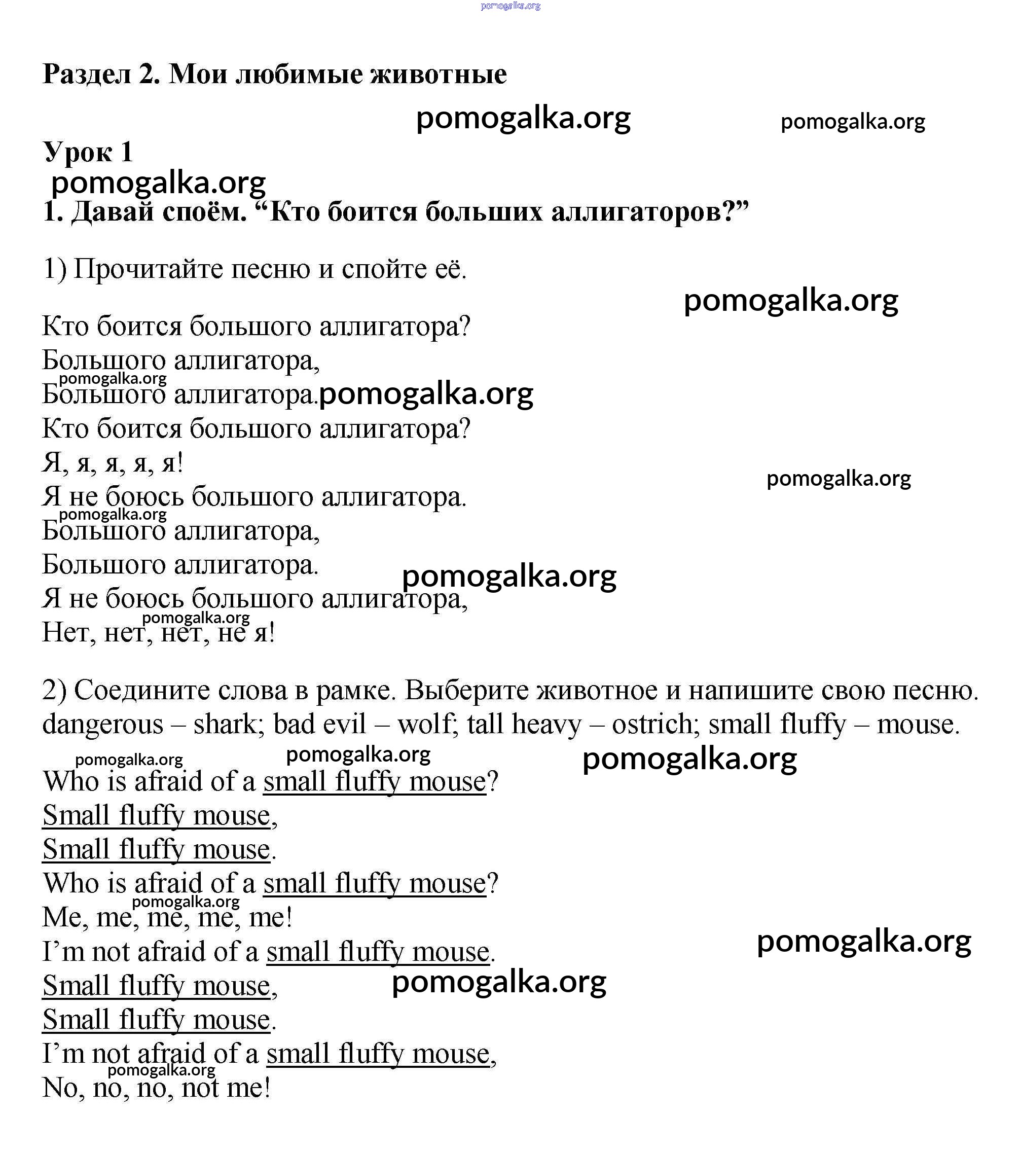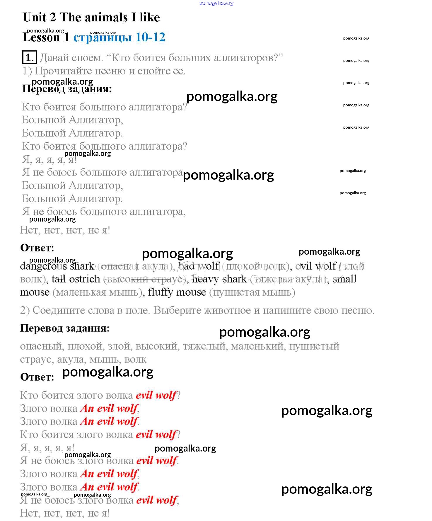 Unit 2. The animals I like. Lessons 1-7