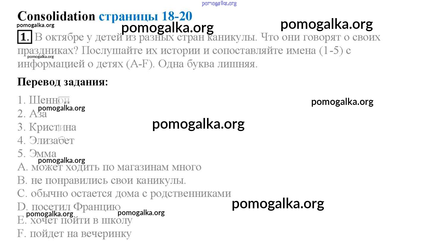 Готовые ответы - Английский язык 4 класс рабочая тетрадь Кузовлев В.П. - consolidation unit 2 1