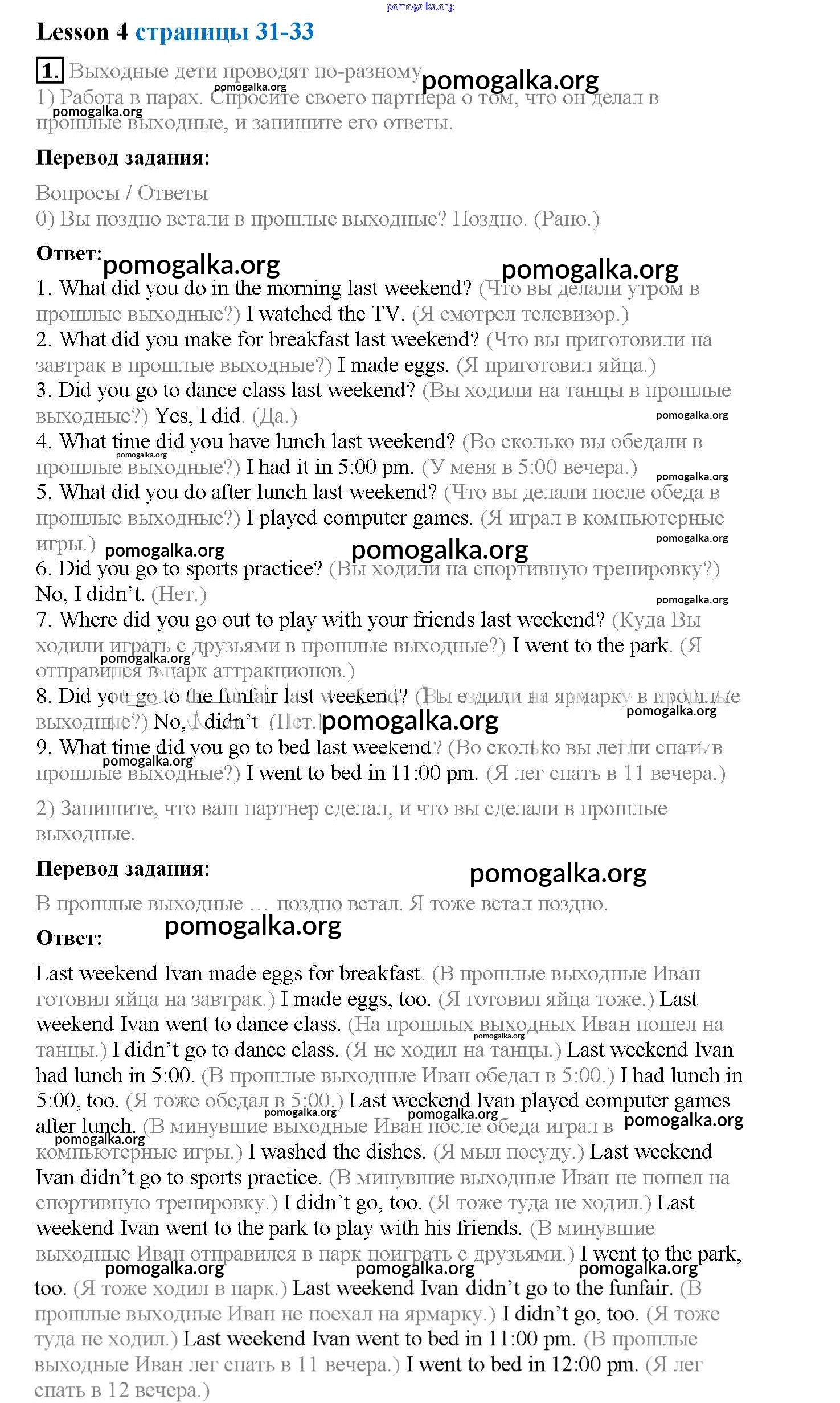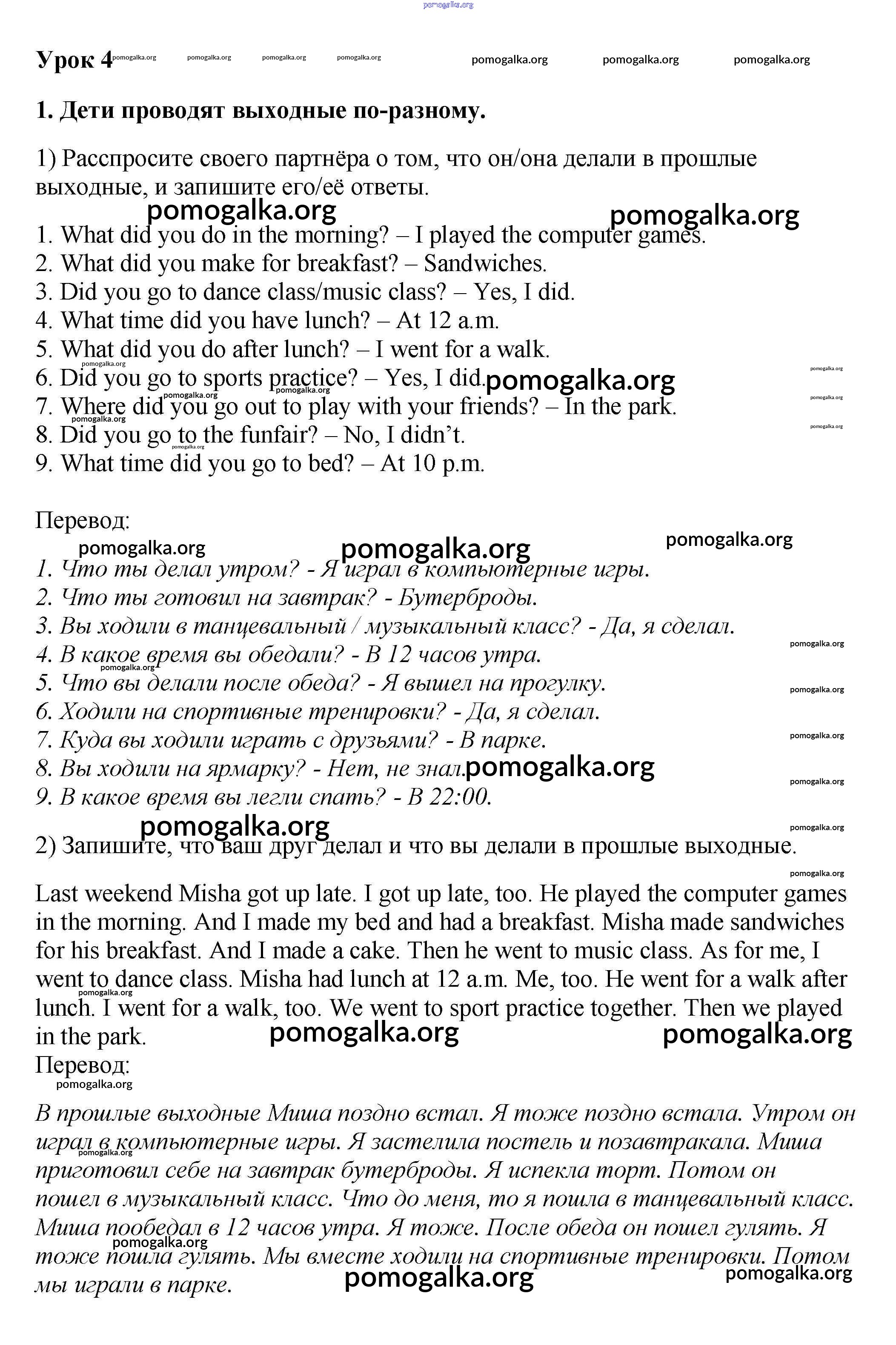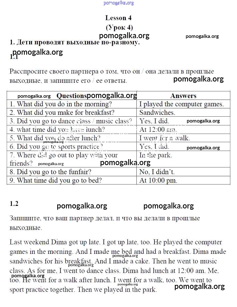 Готовые ответы - Английский язык 4 класс рабочая тетрадь Кузовлев В.П. - lesson 4 unit 3 1