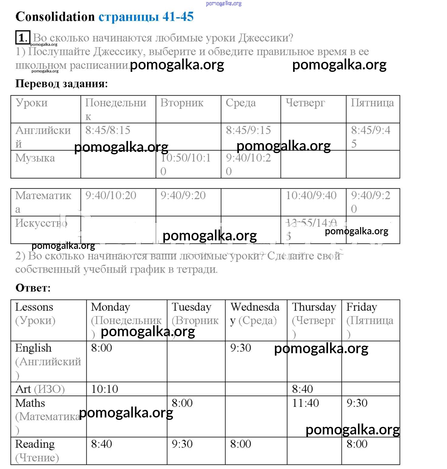 Готовые ответы - Английский язык 4 класс рабочая тетрадь Кузовлев В.П. - сonsolidation unit 4 1