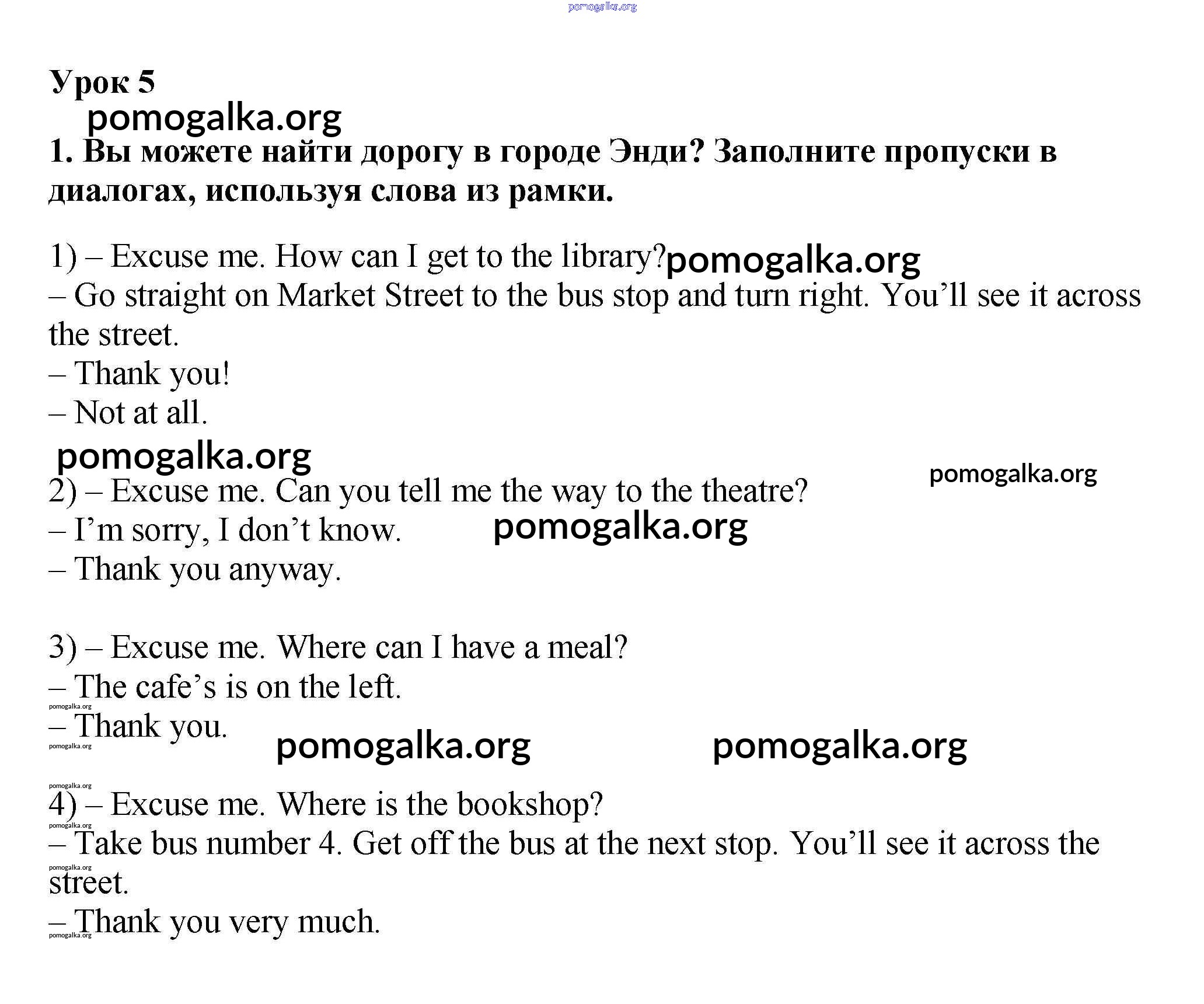 Готовые ответы - Английский язык 4 класс рабочая тетрадь Кузовлев В.П. - lesson 5 unit 6 1