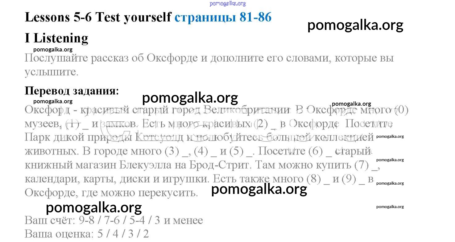 Готовые ответы - Английский язык 4 класс рабочая тетрадь Кузовлев В.П. - lesson 5-6. test yourself unit 7 Listening