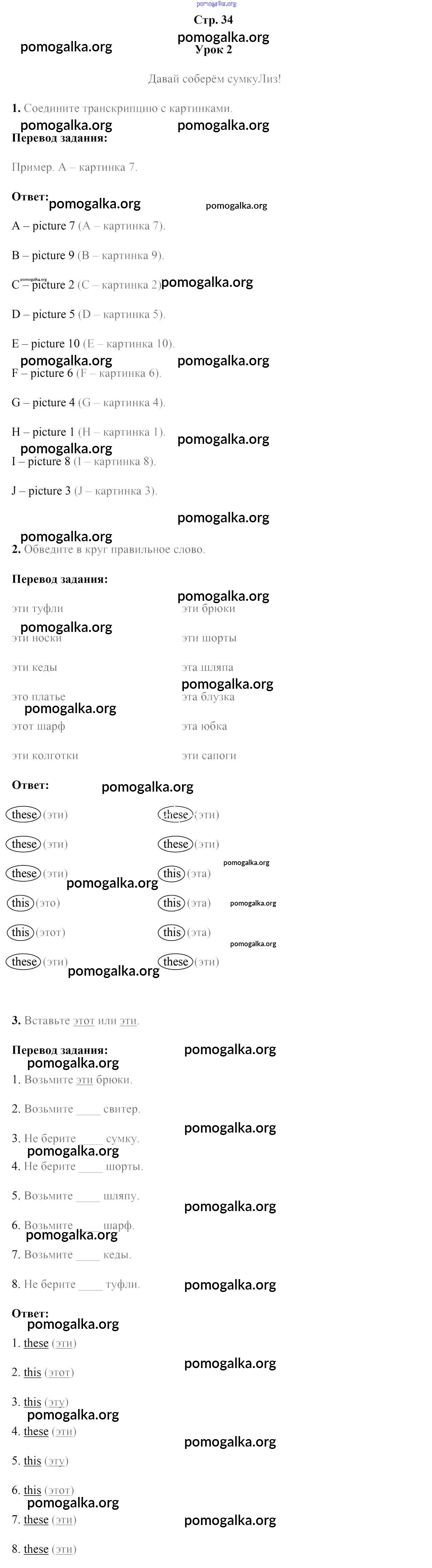 Готовые ответы - Английский язык 4 класс рабочая тетрадь Лапицкая Л.М. - часть 2. страница 34