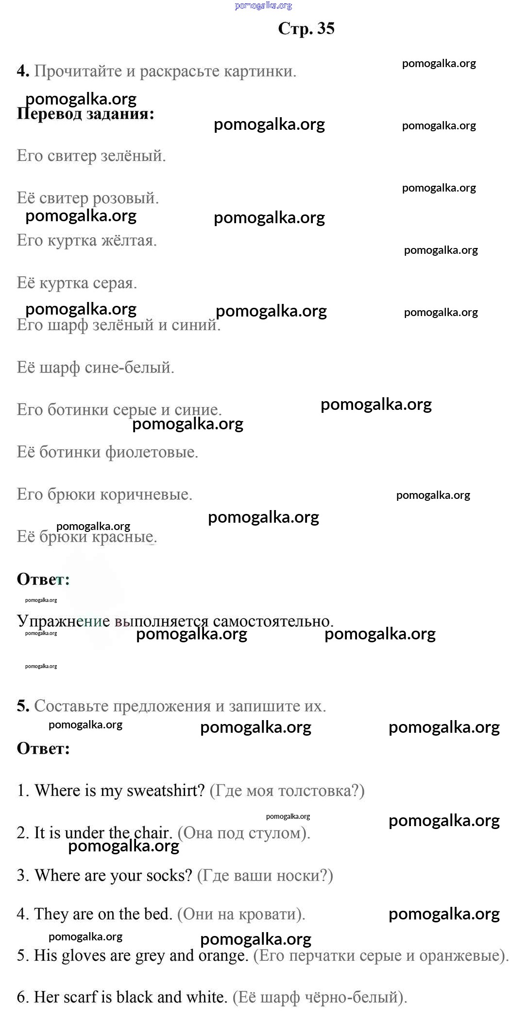 Готовые ответы - Английский язык 4 класс рабочая тетрадь Лапицкая Л.М. - часть 2. страница 35