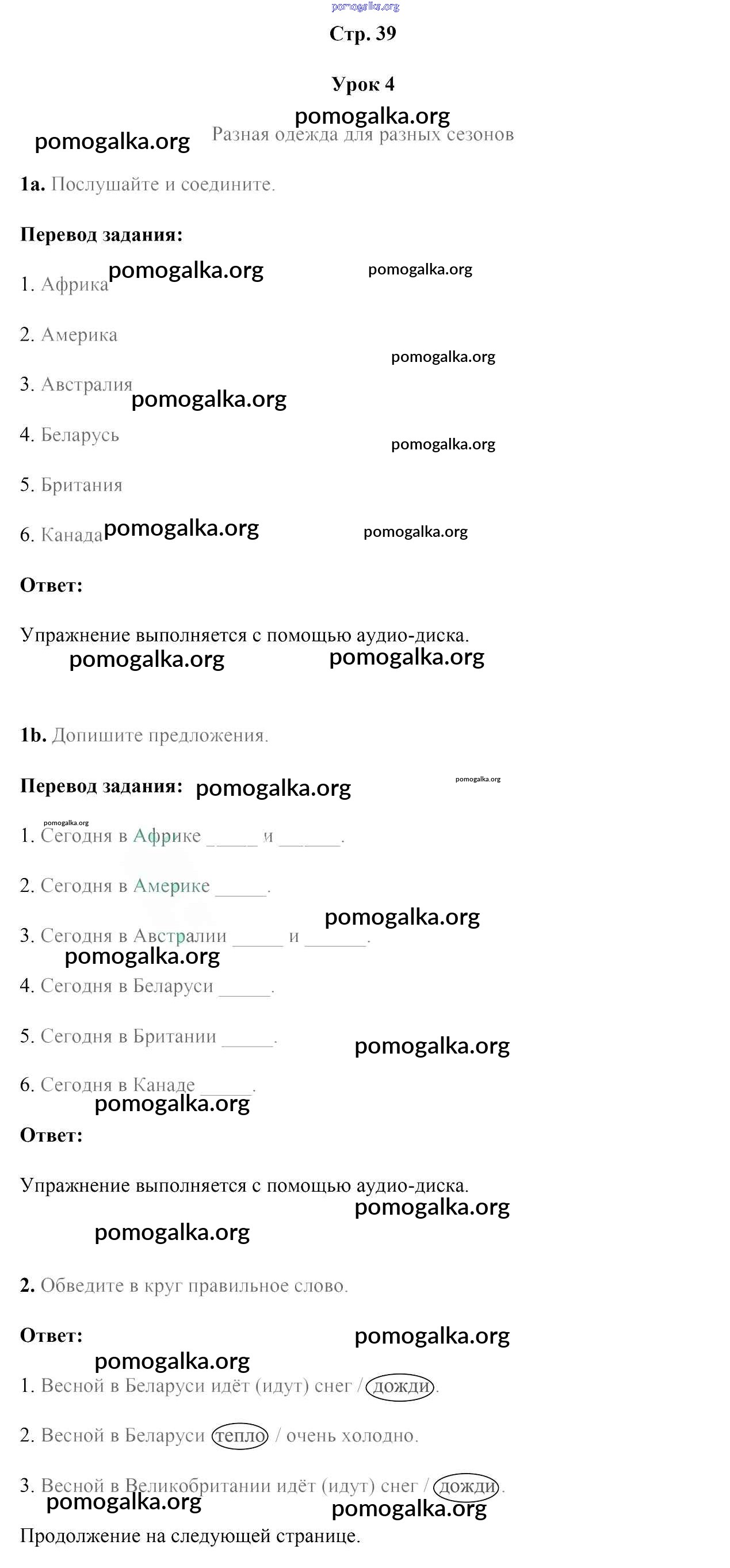 Готовые ответы - Английский язык 4 класс рабочая тетрадь Лапицкая Л.М. - часть 2. страница 39