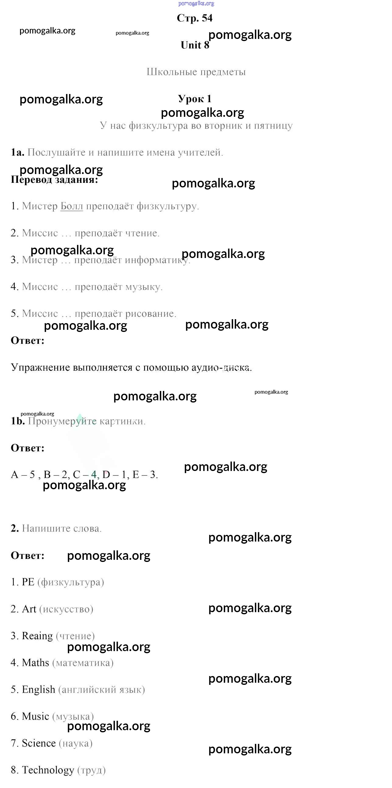 Готовые ответы - Английский язык 4 класс рабочая тетрадь Лапицкая Л.М. - часть 2. страница 54