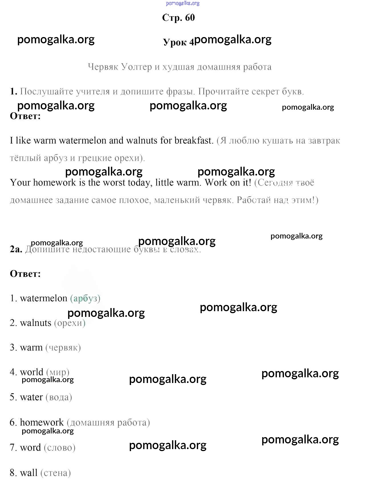 Готовые ответы - Английский язык 4 класс рабочая тетрадь Лапицкая Л.М. - часть 2. страница 60