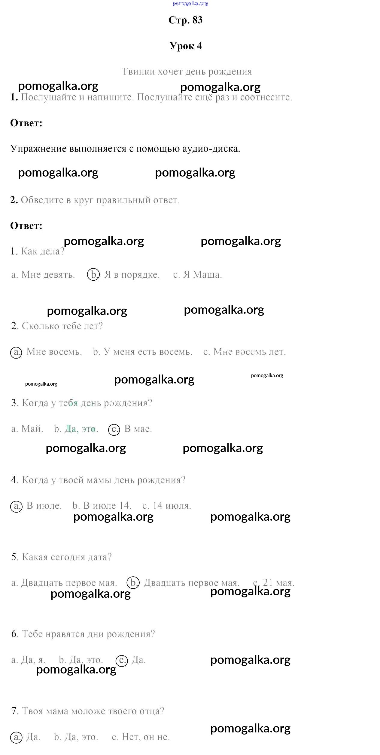Готовые ответы - Английский язык 4 класс рабочая тетрадь Лапицкая Л.М. - часть 2. страница 83