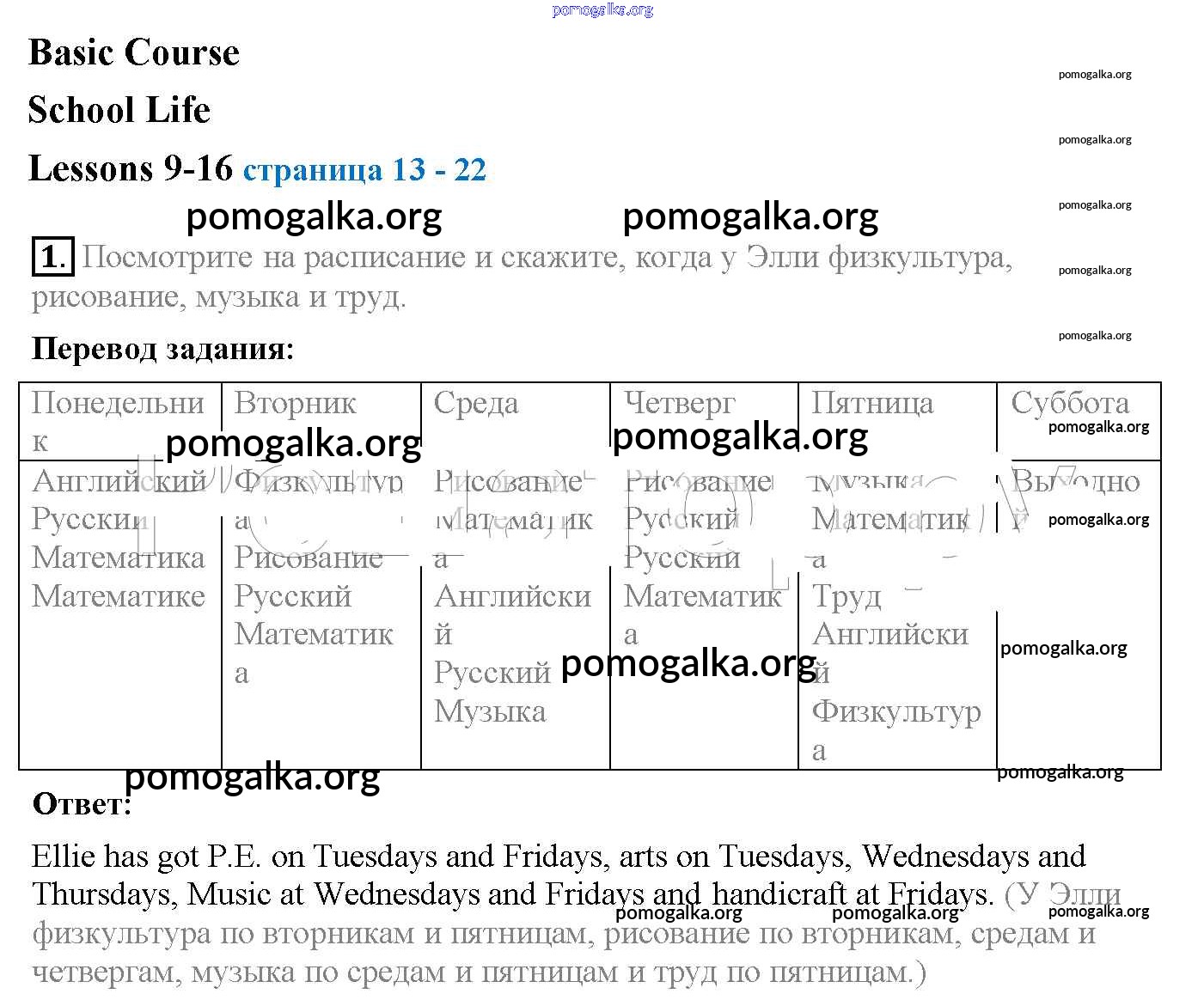 Готовые ответы - Английский язык 4 класс рабочая тетрадь Верещагина - lesson 9-16 1