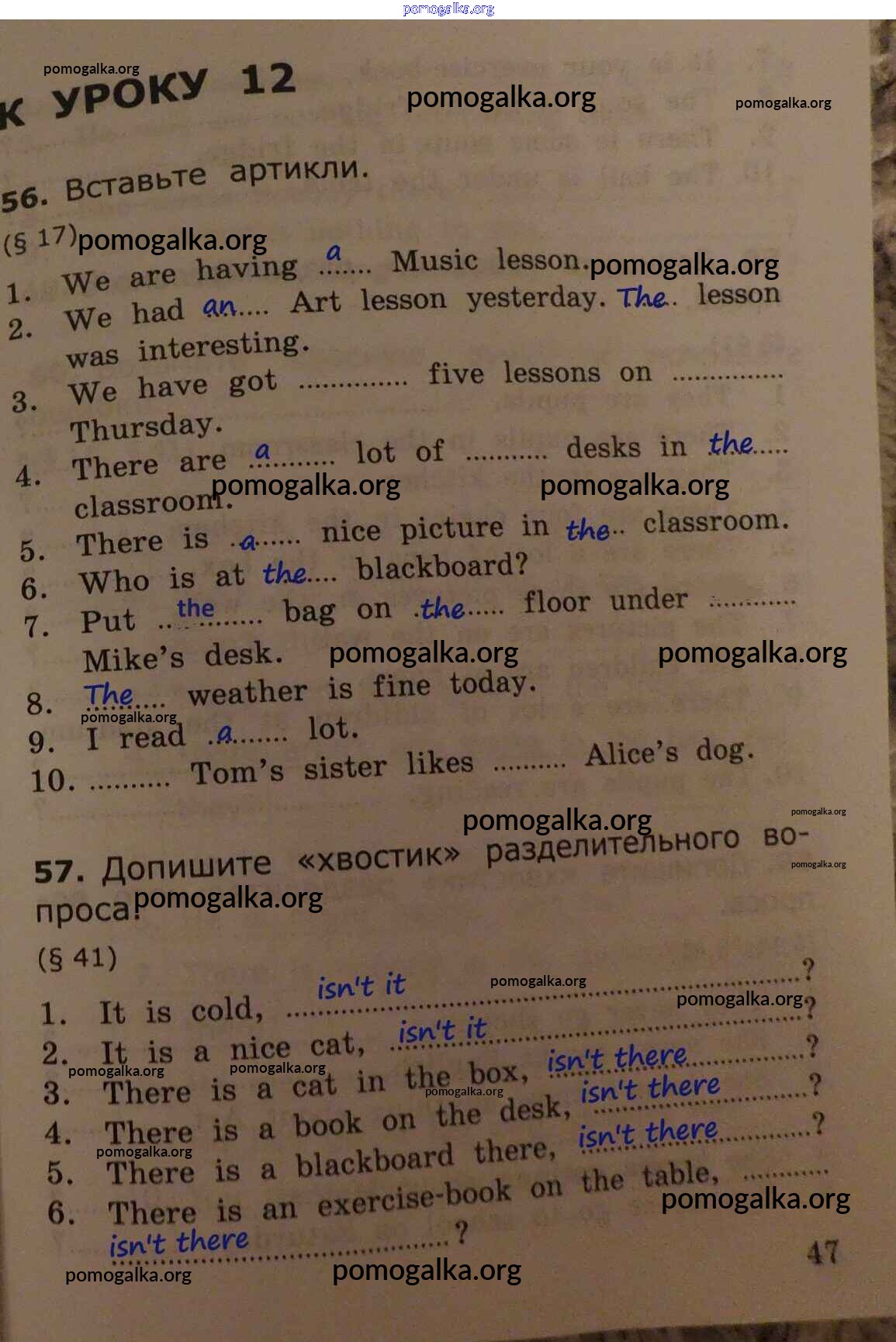 Готовые ответы - Английский язык. Грамматика английского языка 4 класс сборник упражнений Барашкова Е.А. (к уч. Верещагиной) - урок 12 часть 1 стр.47