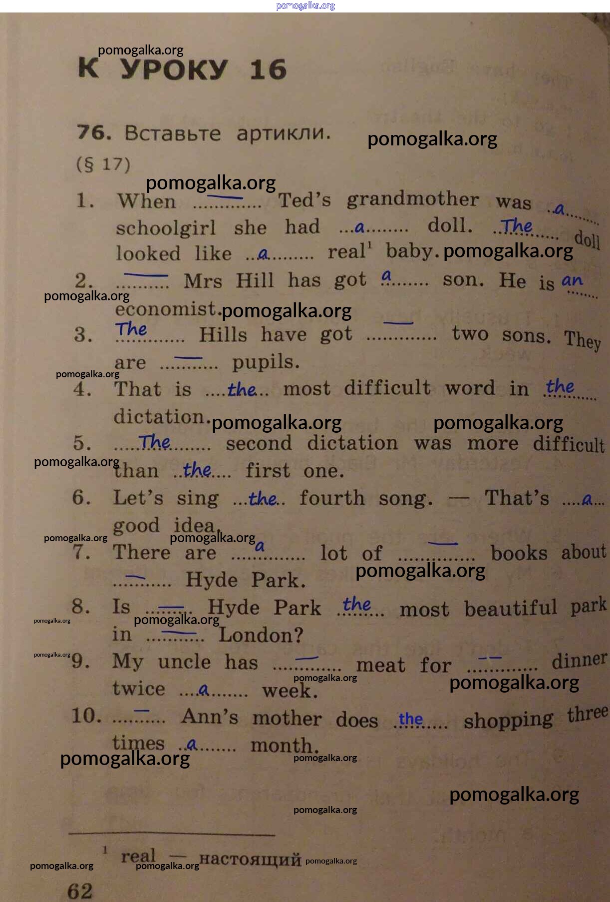 Готовые ответы - Английский язык. Грамматика английского языка 4 класс сборник упражнений Барашкова Е.А. (к уч. Верещагиной) - урок 16 часть 1 стр.62
