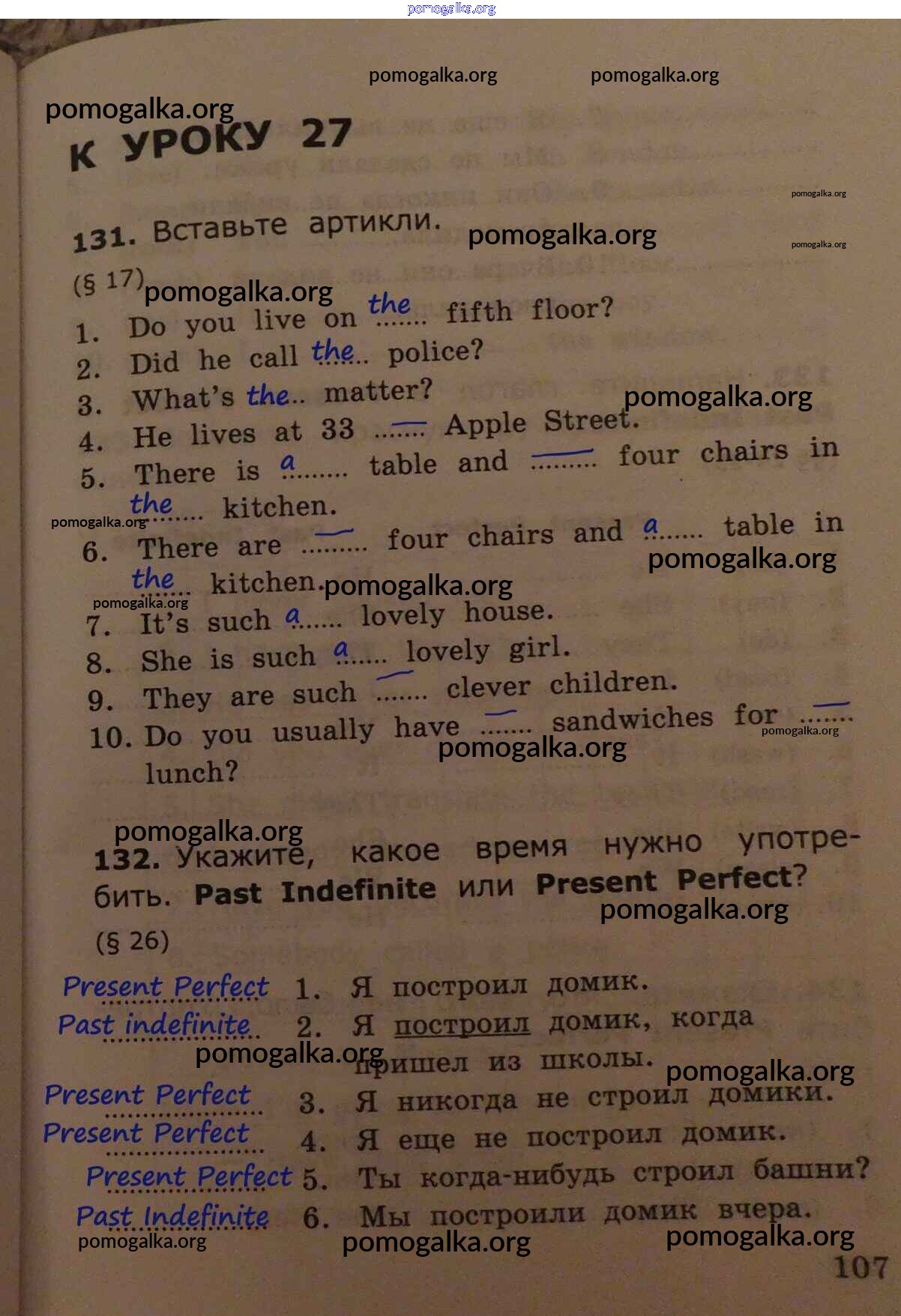 Готовые ответы - Английский язык. Грамматика английского языка 4 класс сборник упражнений Барашкова Е.А. (к уч. Верещагиной) - урок 27 часть 1 стр.107