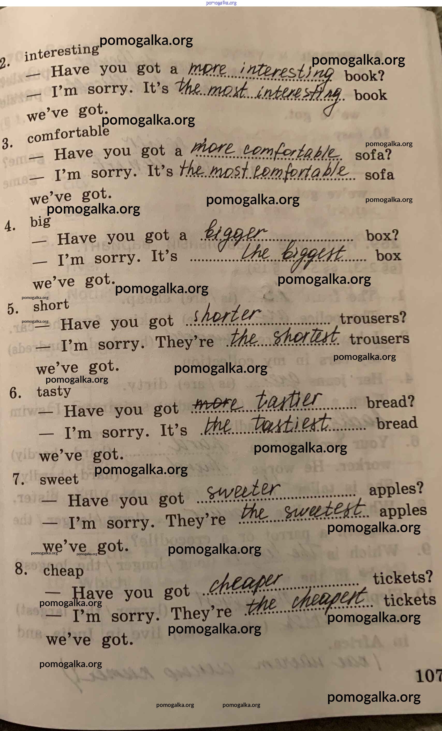 Готовые ответы - Английский язык. Грамматика английского языка 4 класс сборник упражнений Барашкова Е.А. (к уч. Верещагиной) - урок 54 часть 2 стр.107
