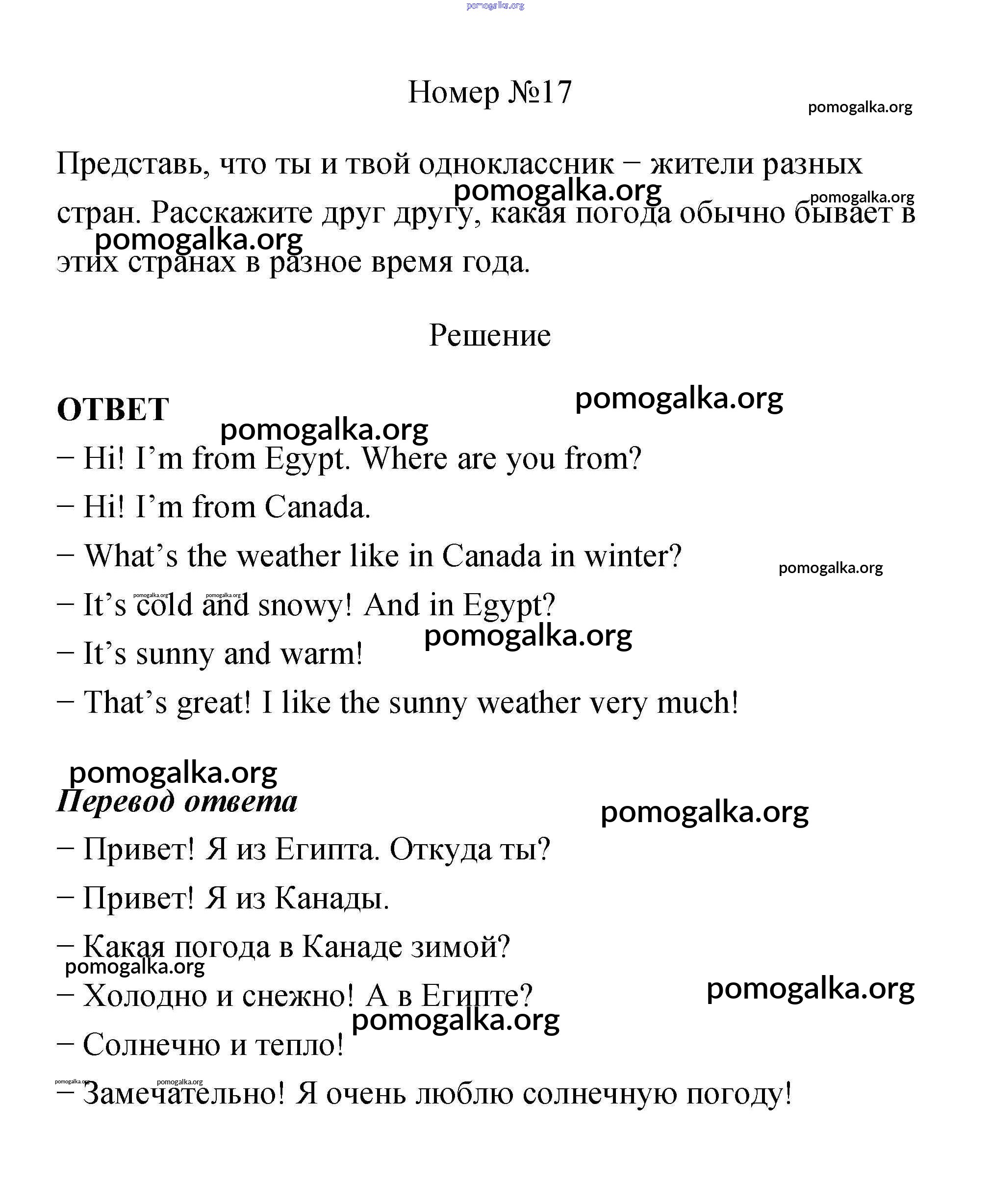 Готовые ответы - Английский язык 4 класс Биболетова - what is your favourite season unit 1 17