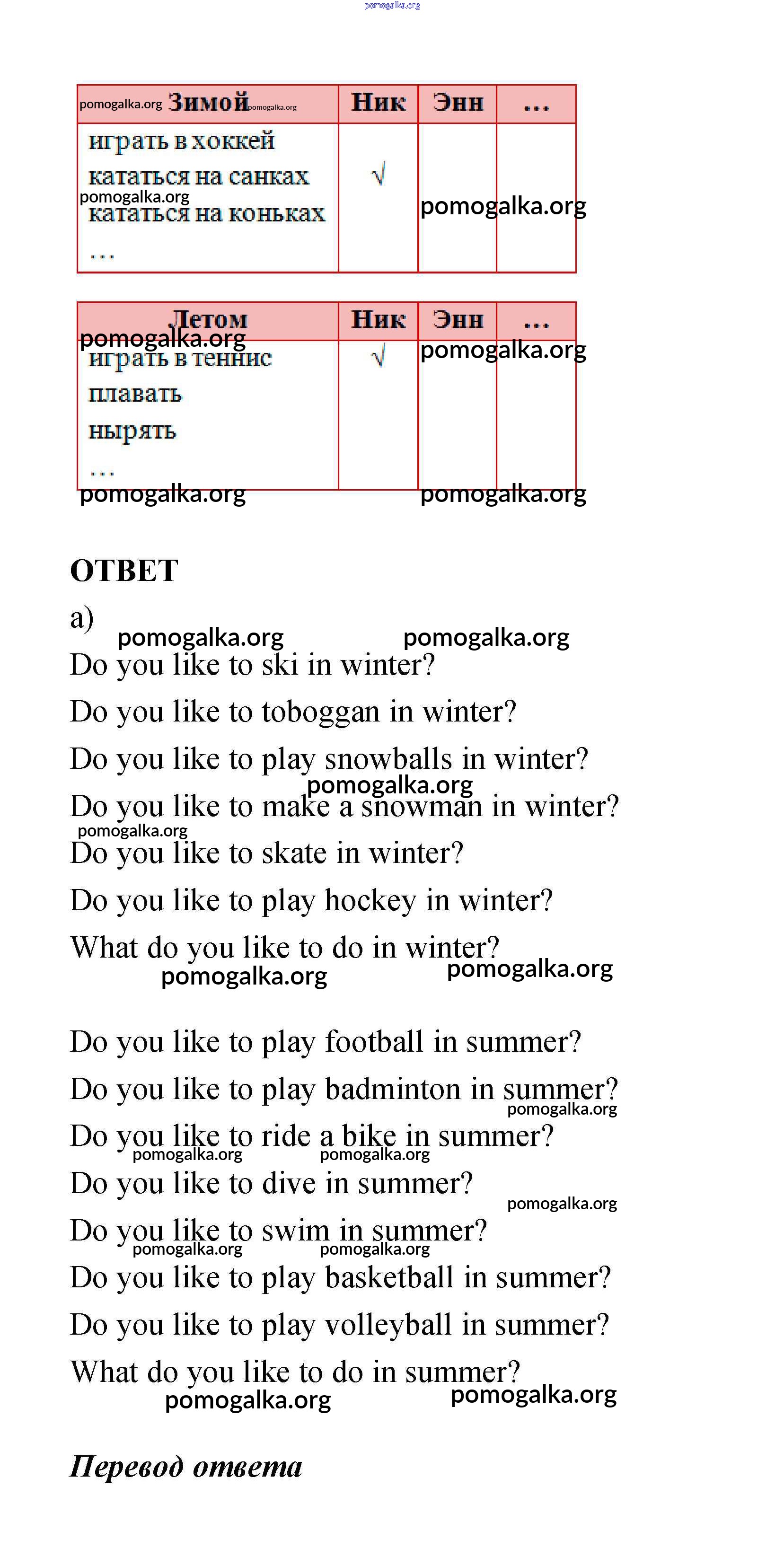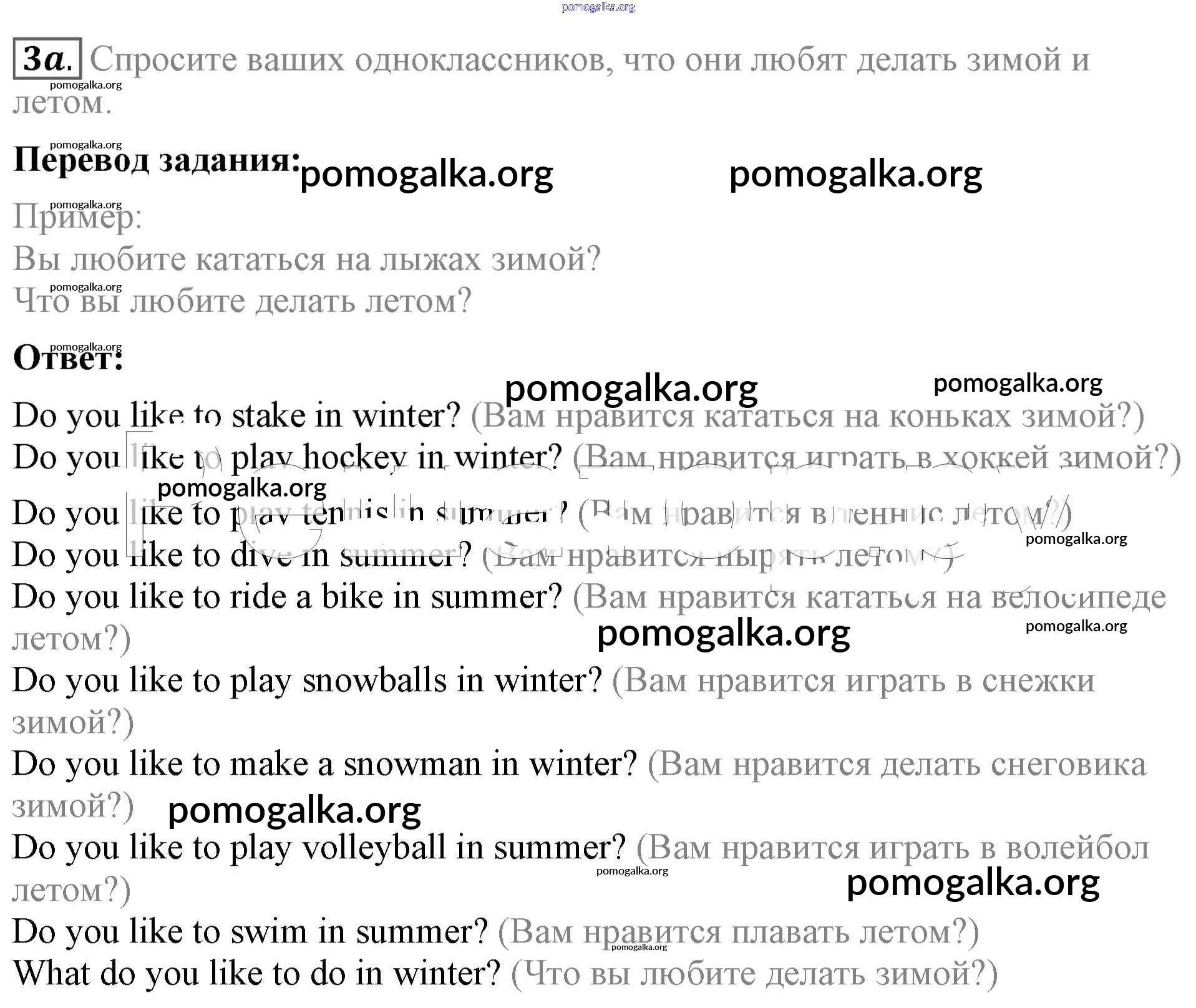 Готовые ответы - Английский язык 4 класс Биболетова - what is your favourite season unit 1 3a