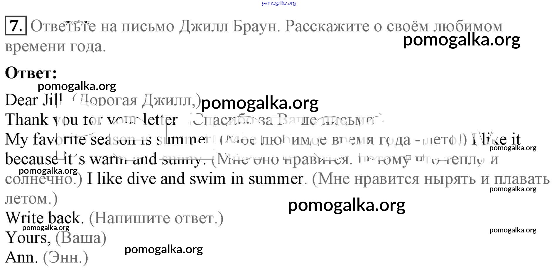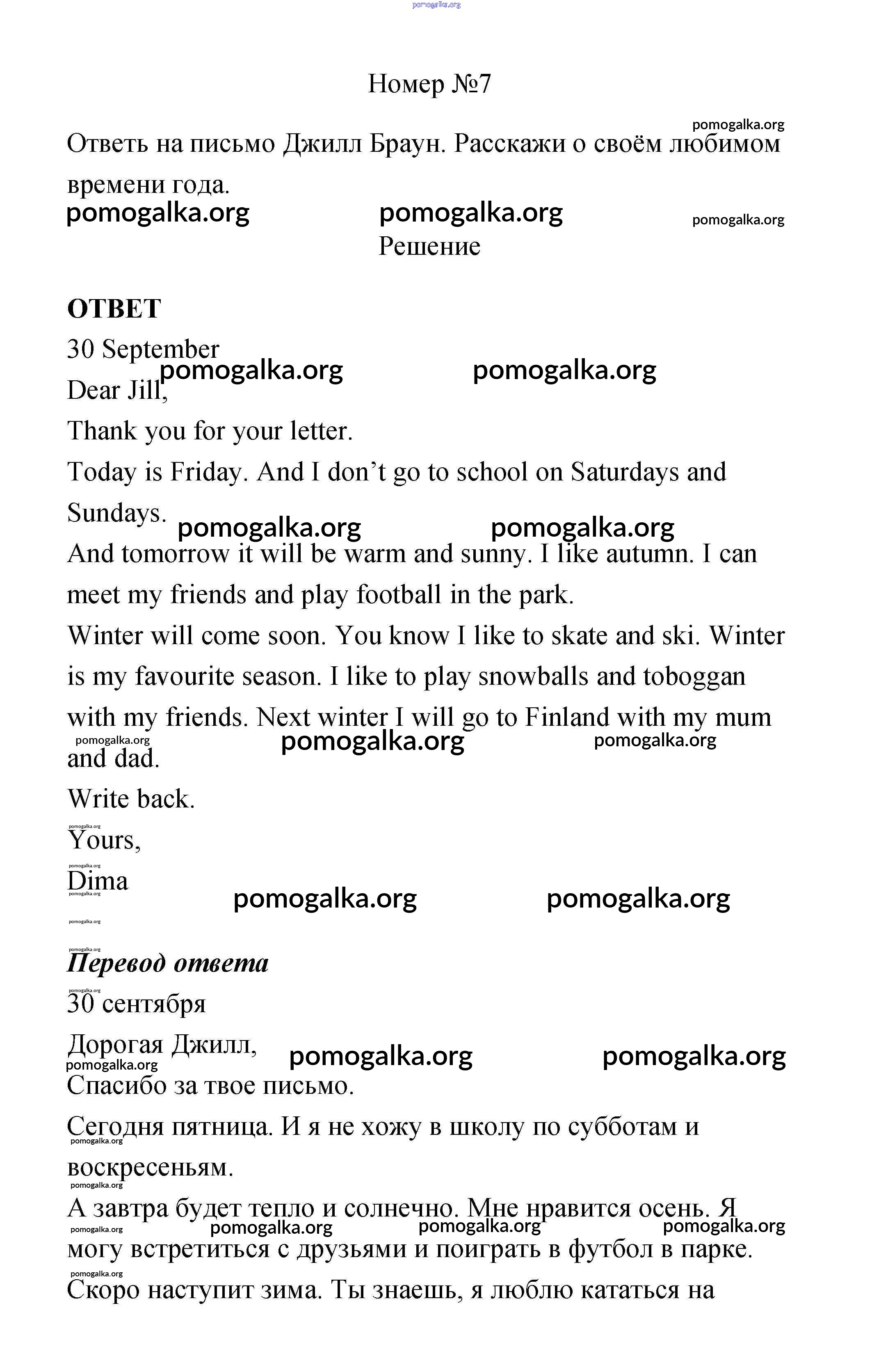 Готовые ответы - Английский язык 4 класс Биболетова - writing at home unit 1 7