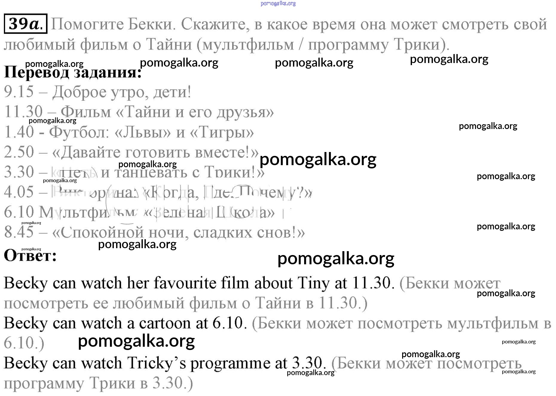 Готовые ответы - Английский язык 4 класс Биболетова - answering phone calls unit 5 39